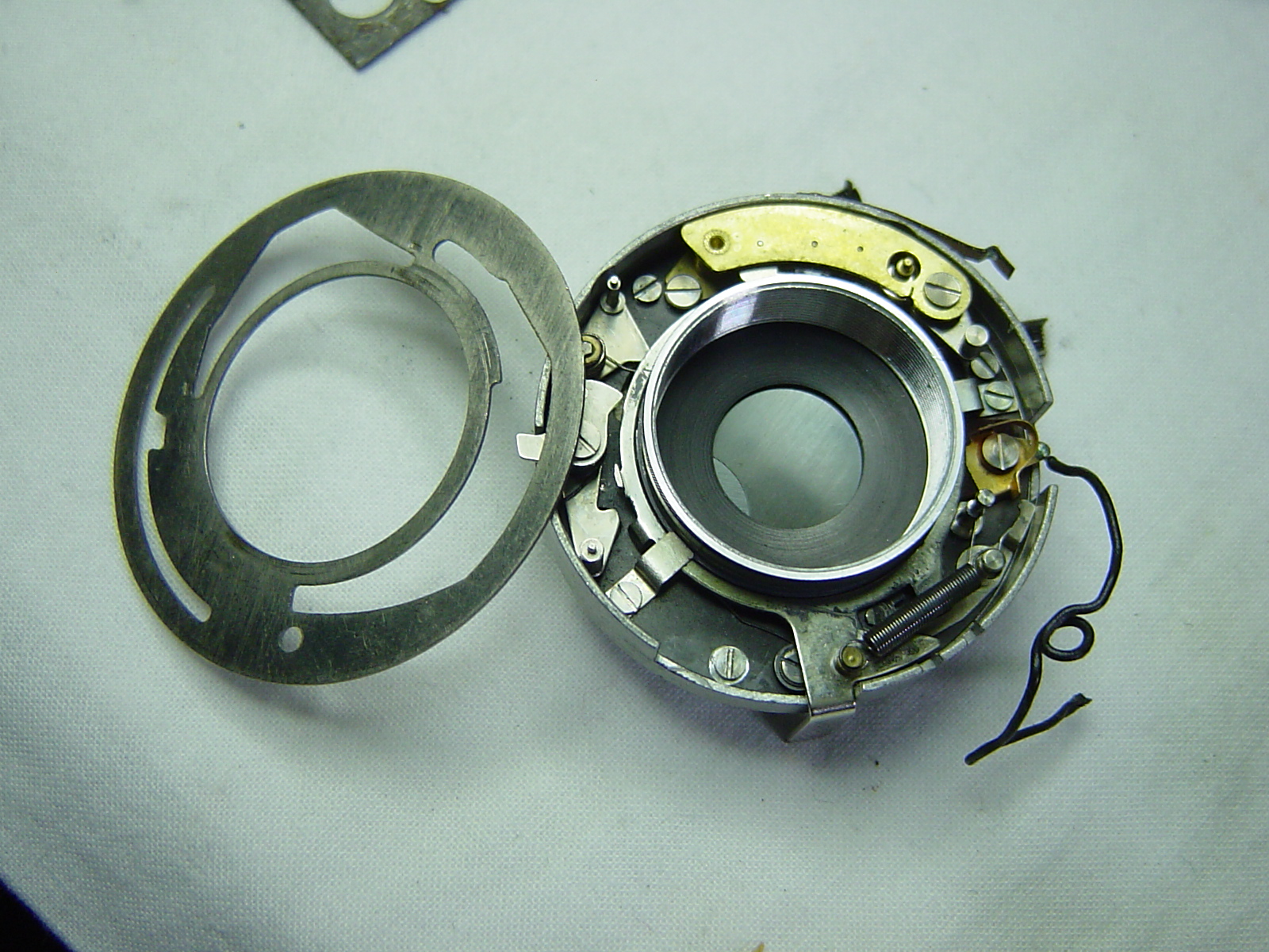 レリーズボタンをシャッターに伝える機構や、LVリングの情報をメーターに伝える機構が組み込まれています。
