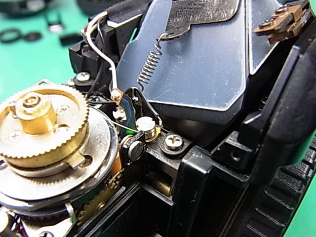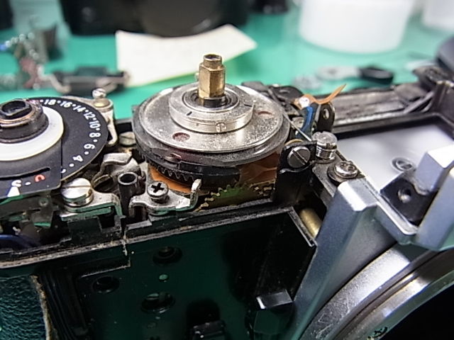 残るは、シャッターダイヤル下部にある摺動抵抗の接触不良が疑われるわけですが、一通りクリーニングしただけではやはり症状は変わりません。