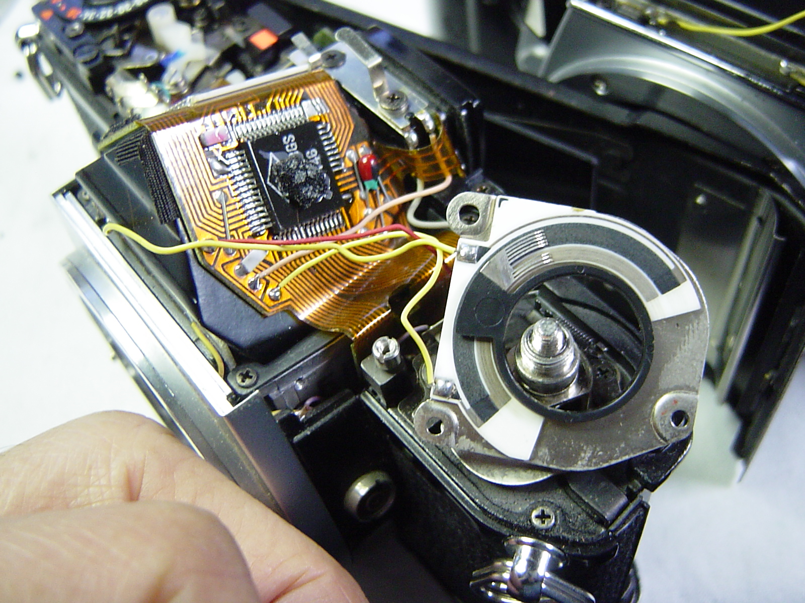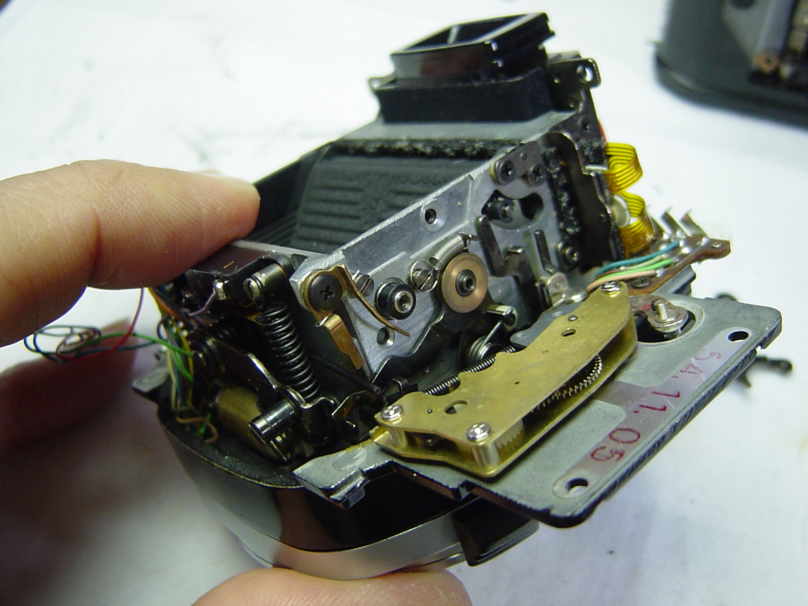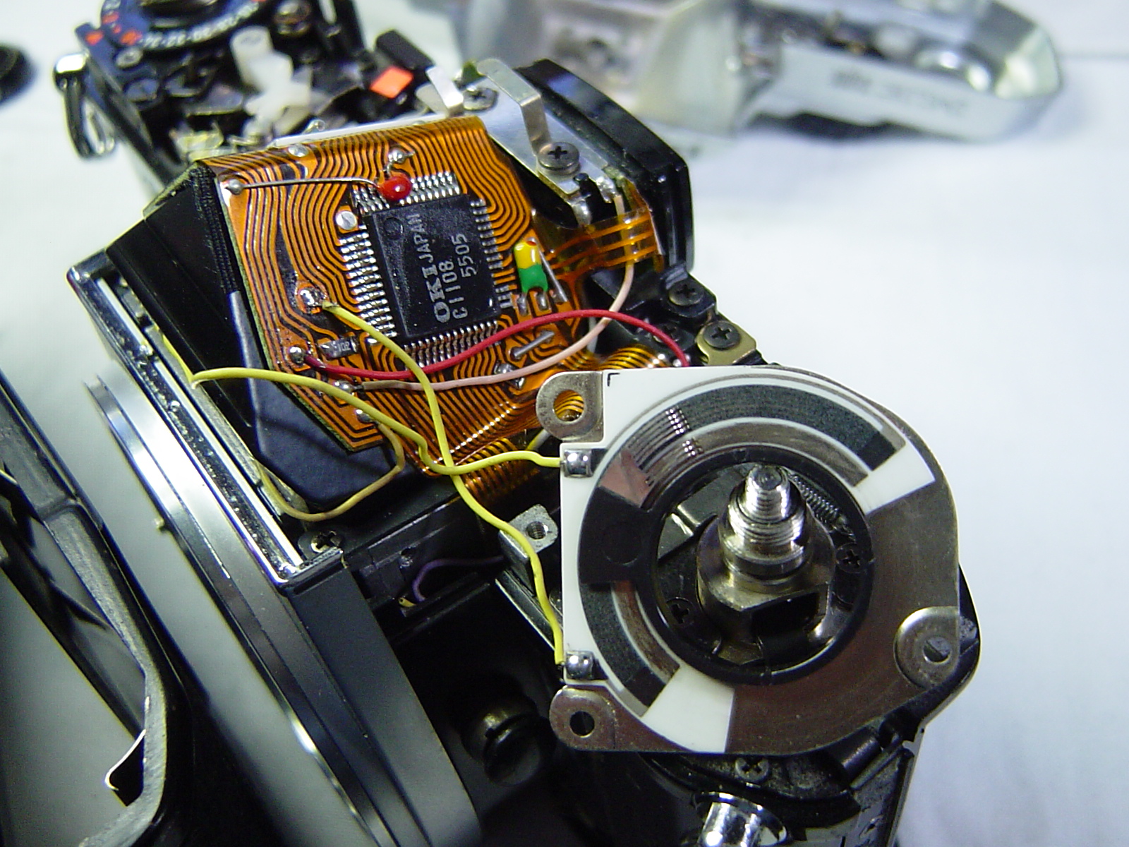左側には、シャッタースピード調整ボタンへの接点が3つ見えます。