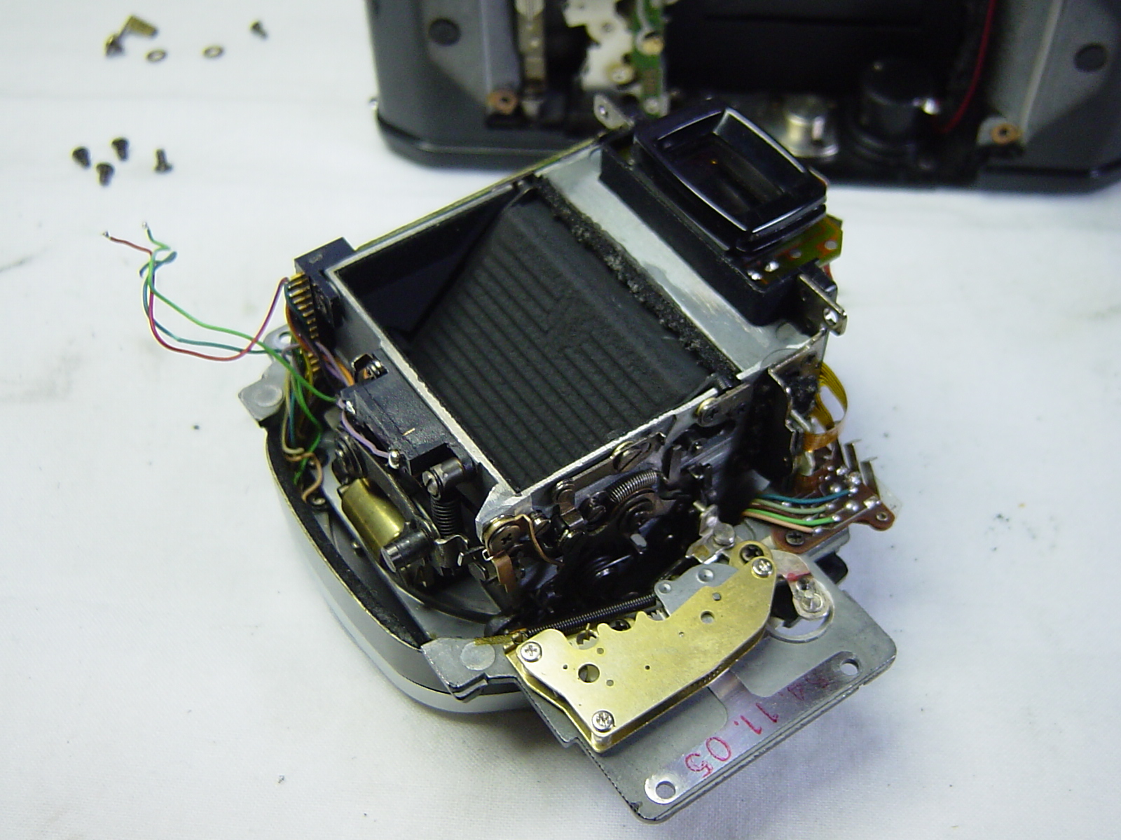 ファインダー、プリズム周りのクリーニングのため、フレキ基板を外します。