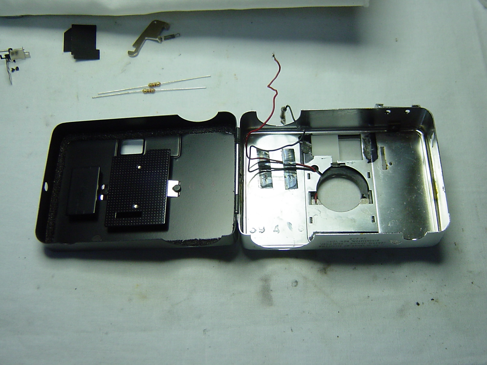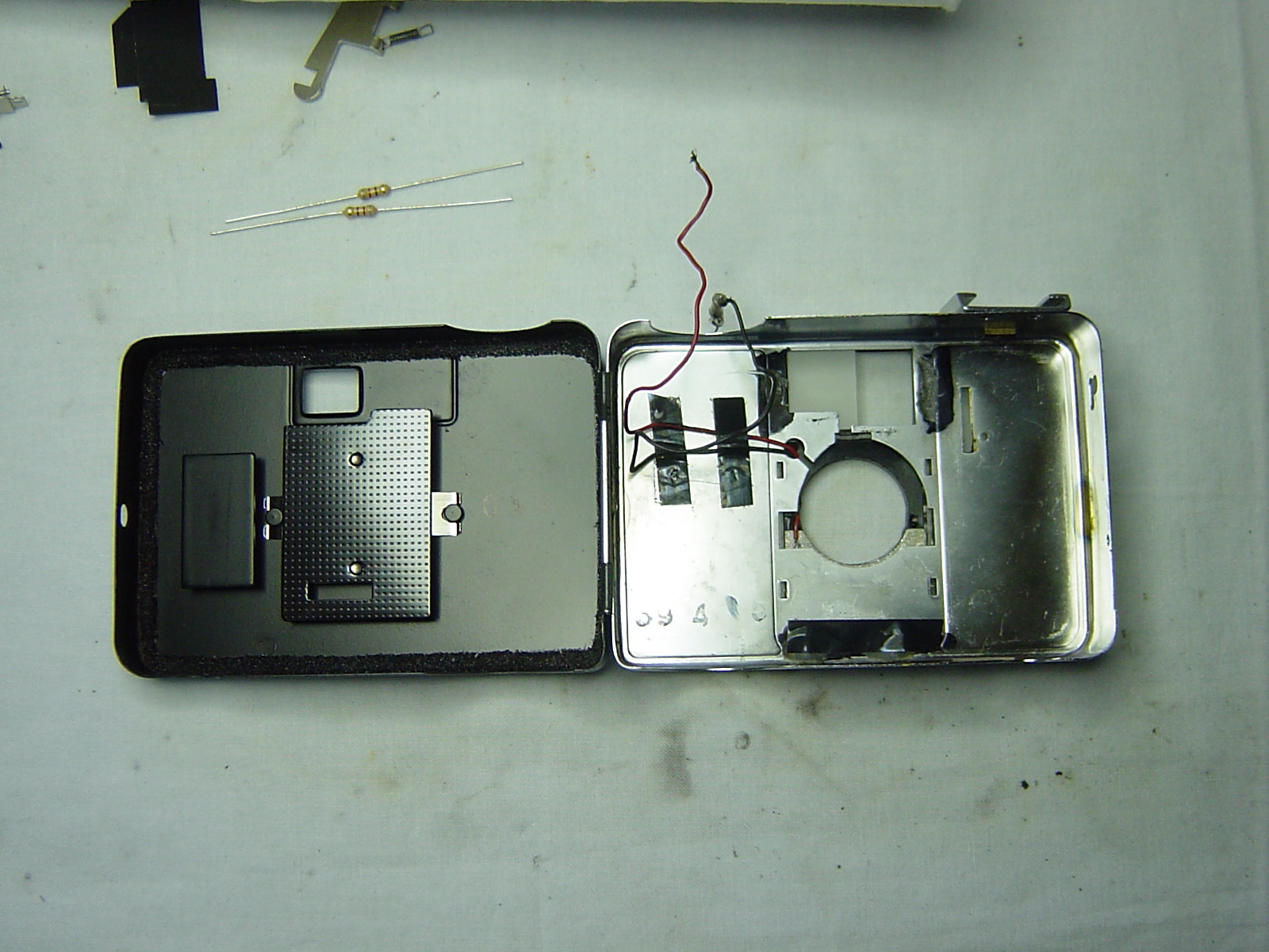ご依頼のカメラは、点検してみますとセレンは少々弱っているものの抵抗の調整で何とかなりそうでしたので、適正値を計測し抵抗を交換しました。
