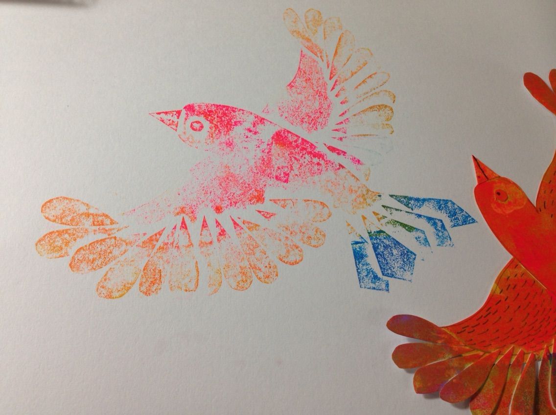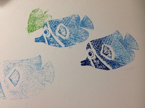 紙を切り貼りしたり、ボールペンで凹みをつけて、スタンプインクをペタペタつけてから、刷ります!