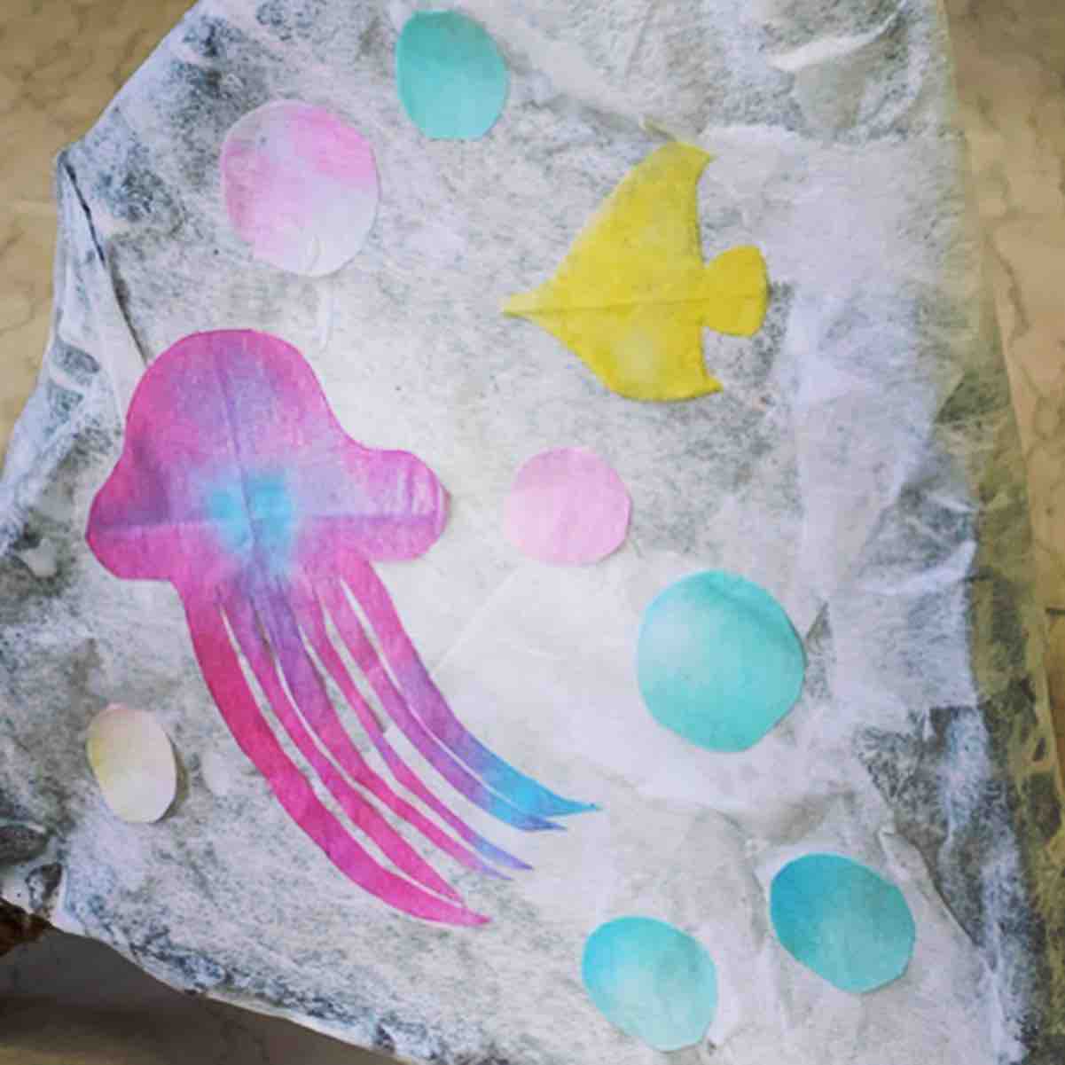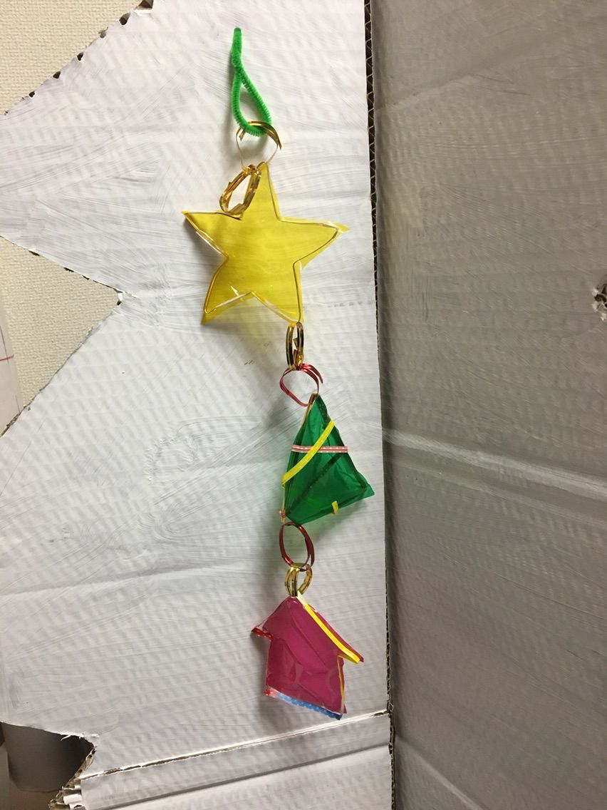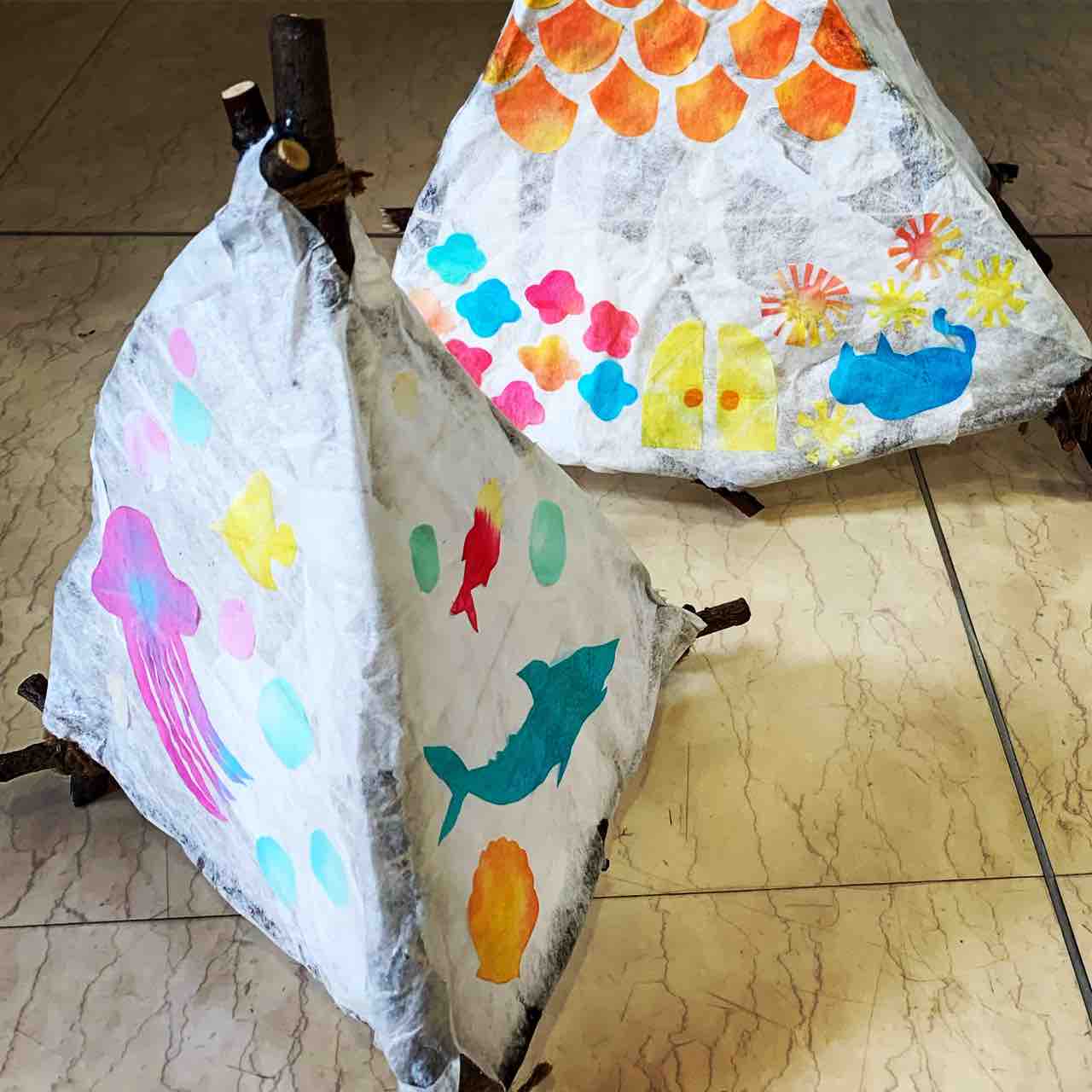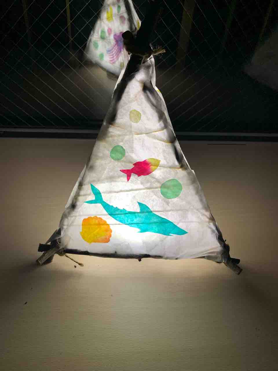 材料:LEDライト、電池、枝、雲龍紙、絵の具、ボンド、その他