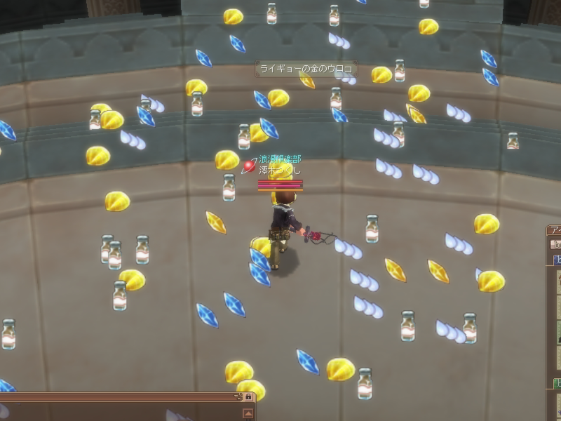 ここでもドロップするアイテムはついつい拾ってしまうのでキャパったところで終了w