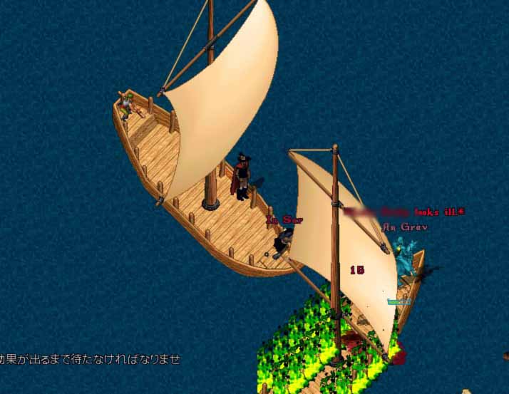 UOに再接続したときには、すでにバラクーダの青が俺の船に乗り込んでいた。