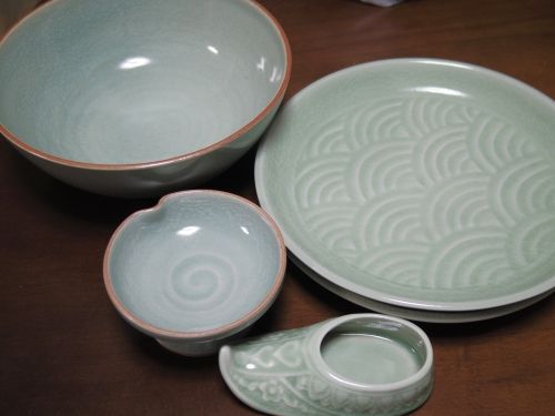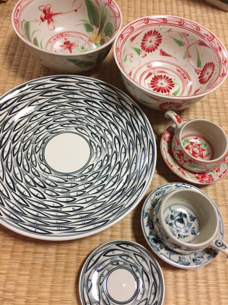 バッチャンも以前はあまり興味がなかったのですが、一昨年タイに行ったときに思いの外セラドン陶器が素敵だったので、その延長かバッチャンも気になっていました。ガイドブックに載っていたカップのデザインが可愛かったのでそれを1客買おうと思っていましたが、現地でいろいろ見てどんどん素敵に見えてきて、結局大皿や丼まで買うことに。ドンコイの土産物店で買ったカップ&ソーサーは1客700円程度、市場で買った丼二つと大皿、小皿1枚ずつで2500円弱くらいでしょうか。多分もっと安い店もあると思いますが、個人的には十分納得できたので大満足です。同じバッチャンでも「オーセンティック」のモダンな洗練された食器もとても素敵でしたが、やはり伝統的な素朴なものに惹かれました。