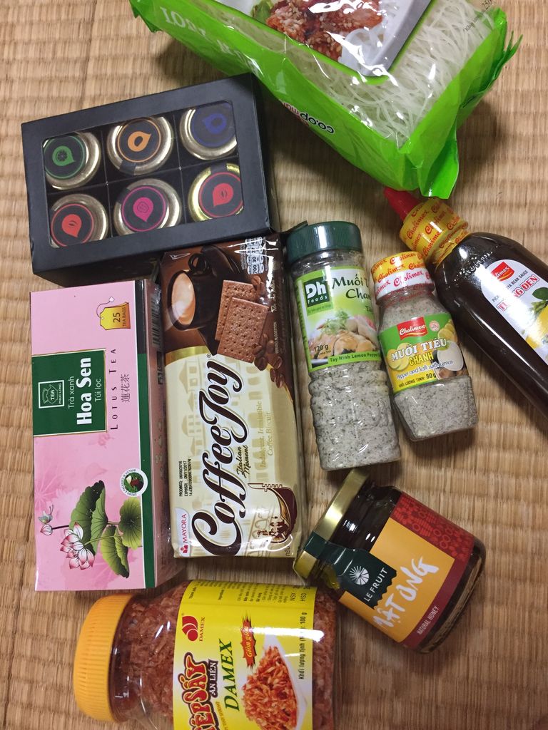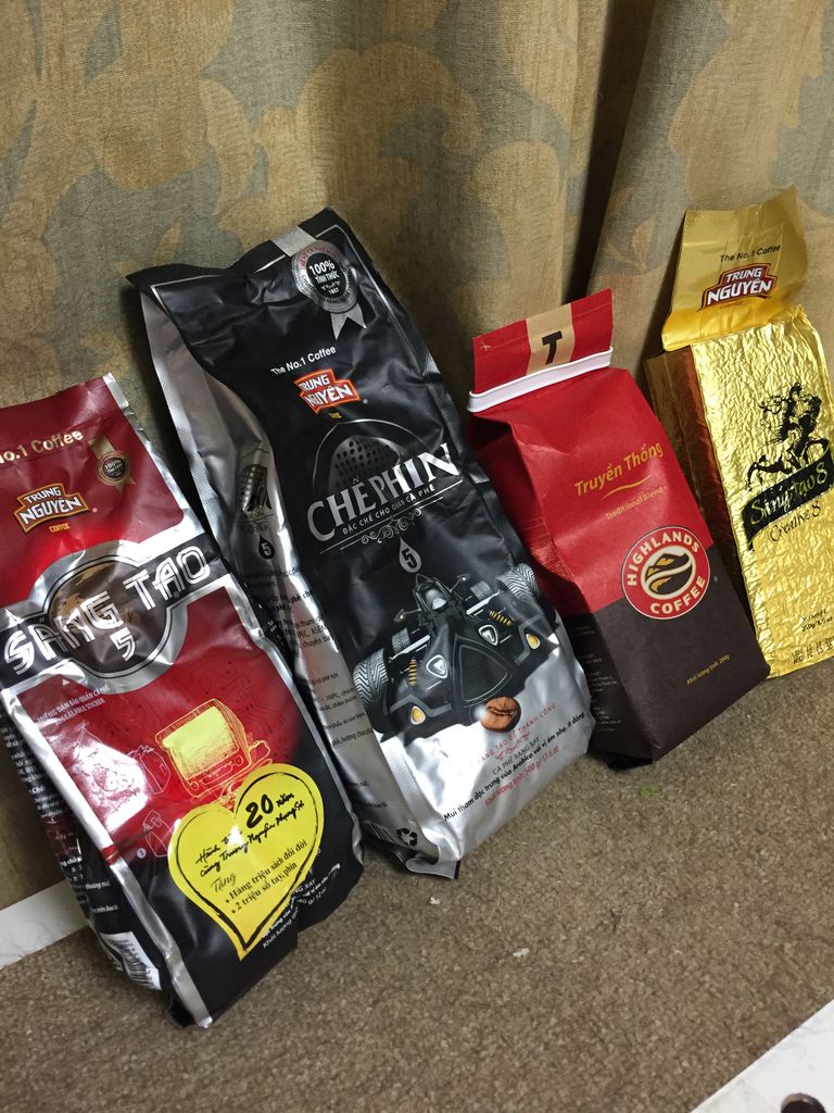 更にコーヒーもスーパーで買いました。所謂ベトナムコーヒーはロブスタ種といって、日本でドリップして淹れるアラビカ種とは味も風味も違います。濃厚でちょっとアクが強いというか…これをベトナム式に練乳を入れて飲むと、とても美味しくなるのです。ですが最近は輸出用にベトナムでもアラビカ種を栽培するようになったとか。私はベトナムコーヒーも好きなので、今回下調べして評判の良いメーカーを調べておきました。買ったのはこの3種、チュングエン社のNO.5(アラビカ種)、同業務用らしいアラビカ種系のNO.5(どうやら前述のNO.5と近いようです)、ハイランドコーヒー(アラビカとロブスタのブレンド)。アラビカが多いのでここはやはりロブスタを買おうという話をしたところ、友人が頂き物だけど良ければ、と1パックくれました。試しに淹れて頂いたのですがロブスタっぽい、美味しい珈琲です。帰宅して調べたところ、これはチェングエン社の最高級品で、伝統のタヌキコーヒーの味を再現したとのこと。タヌキコーヒーというのはタヌキがコーヒー豆を食べ、排泄した未消化の豆を焙煎したものだそうです。これもそうなのかな?まだ未開封ですが今から楽しみです。