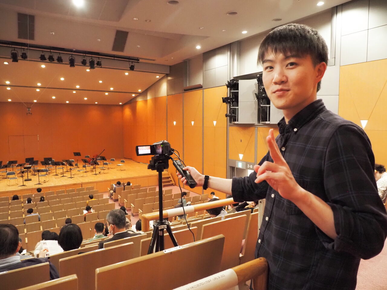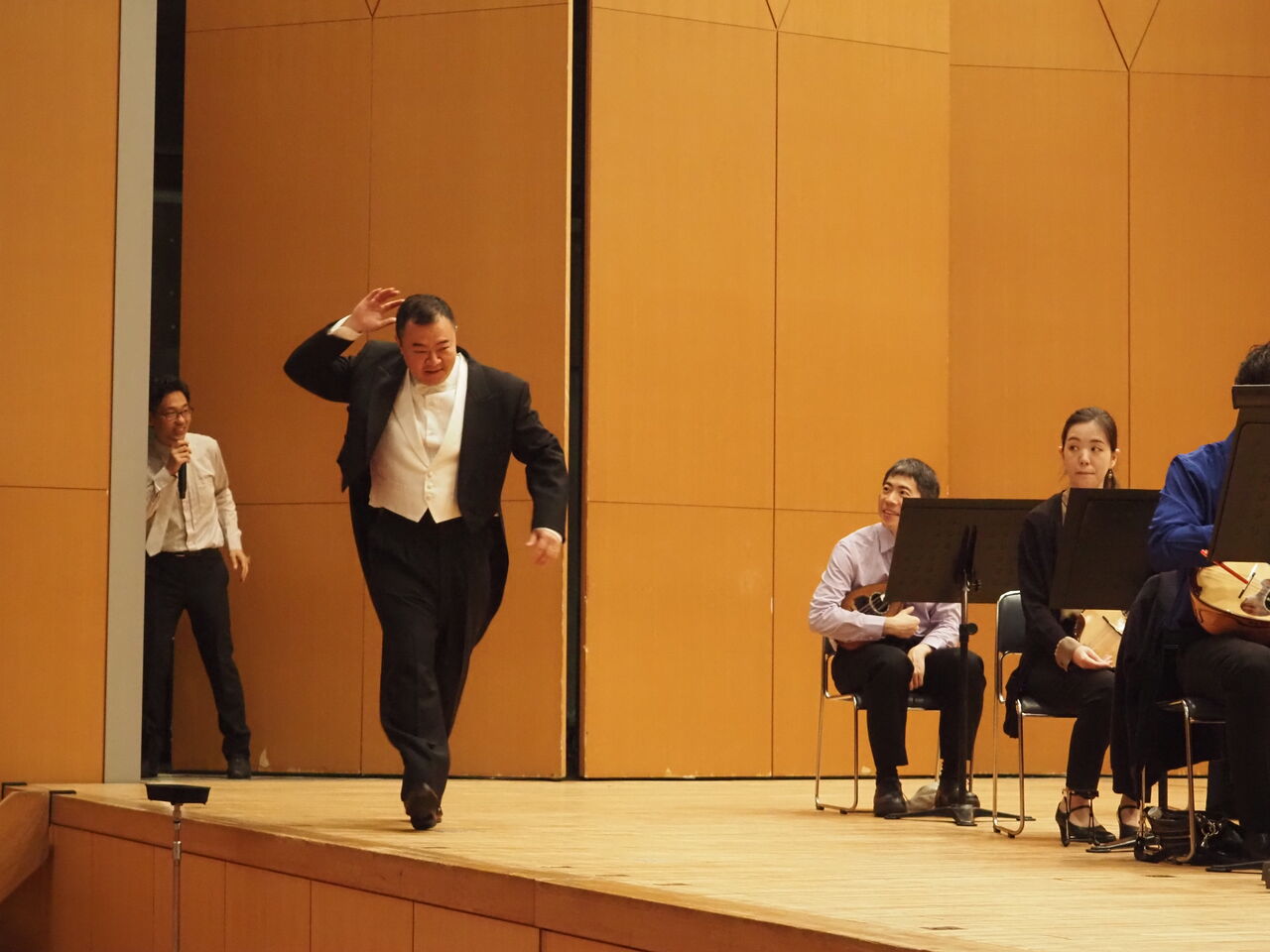 宮川君、毎度お馴染み客席からの演奏聞こえ具合チェックしてくれているところ、こちらもファッションチェックです。