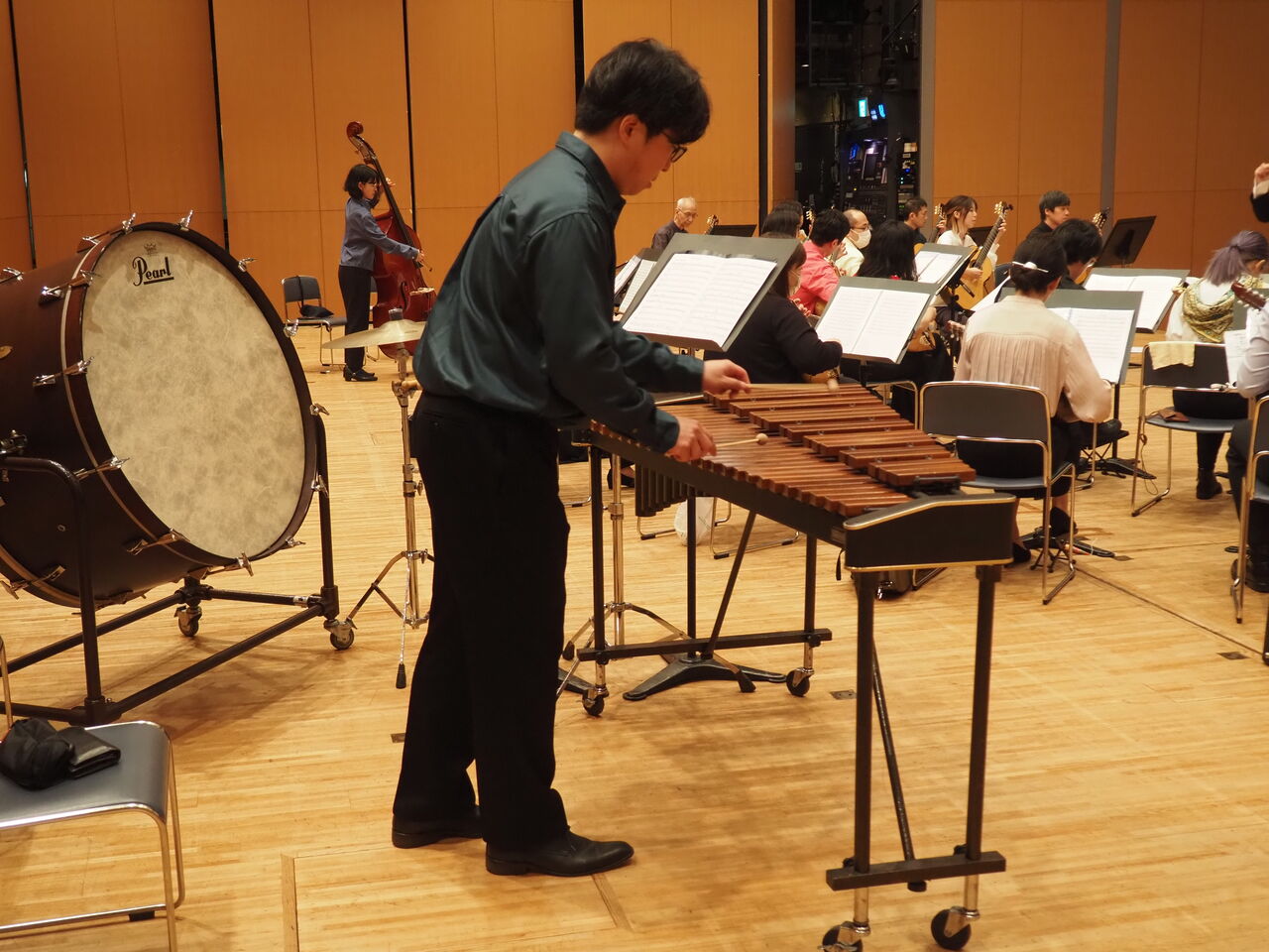 奥の方に、打楽器賛助の稲ちゃん参上!