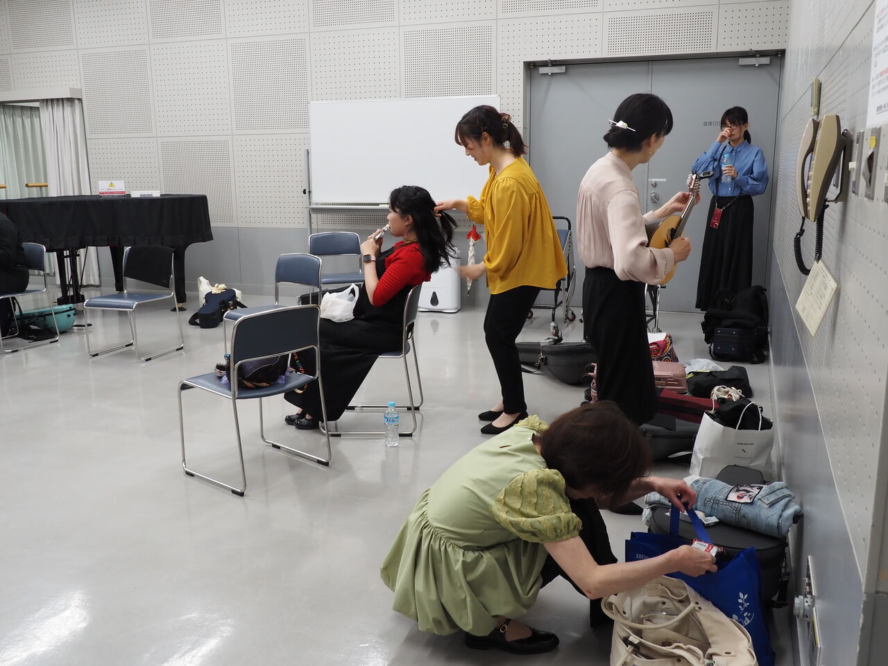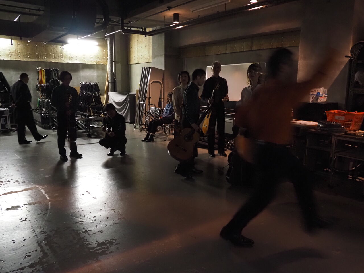 そろそろ開場の時間、みんなごはん終わって楽器出したり、身支度を整えたり。