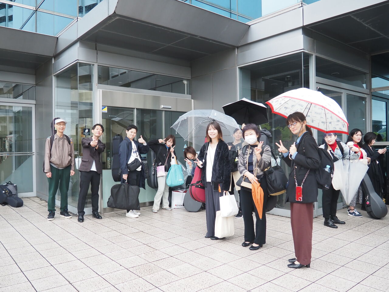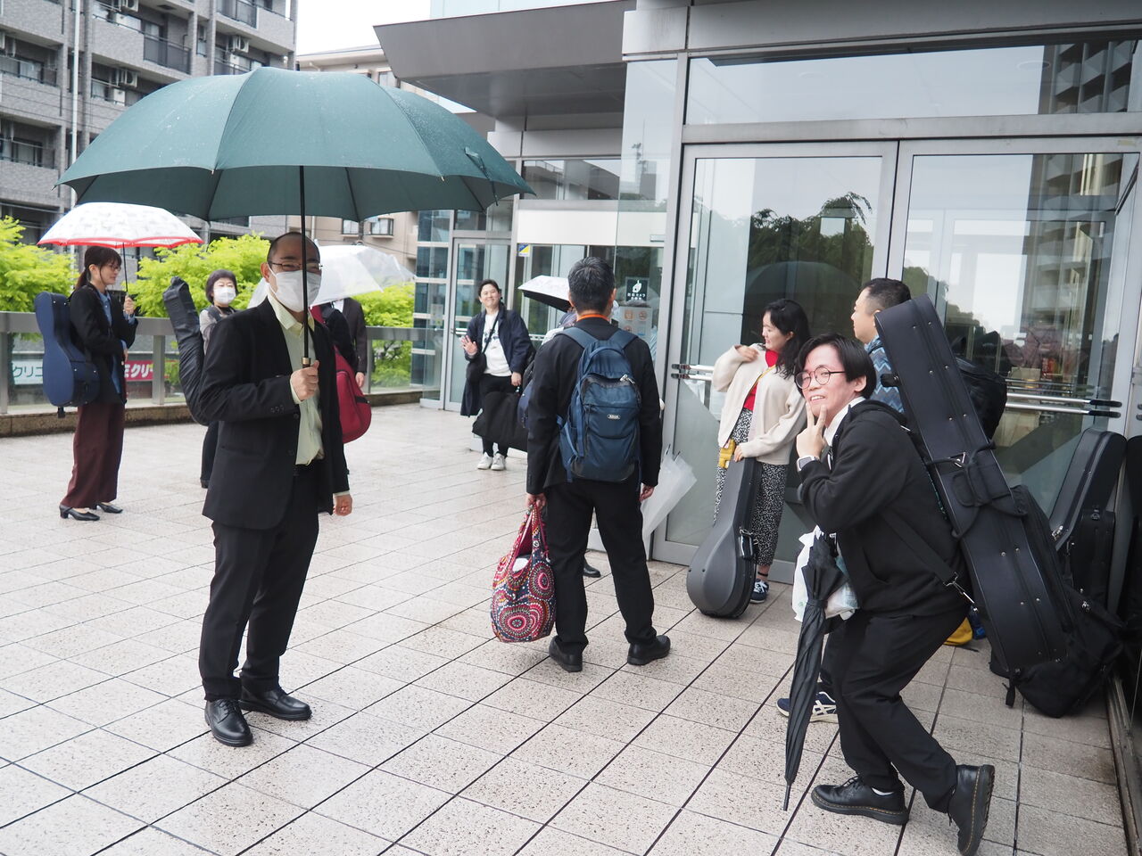 雨の中お疲れ様、みんな楽し気に集合