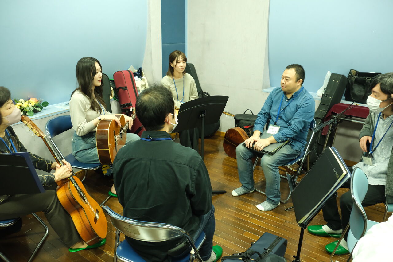 こちらが、見学者さんを囲むギター会です。