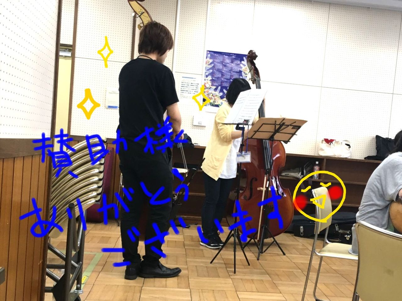 チェロのみんながどこにもいない〜と思ったら、彼らだけ地下のお部屋で和やかに過ごしていたのを無事発見