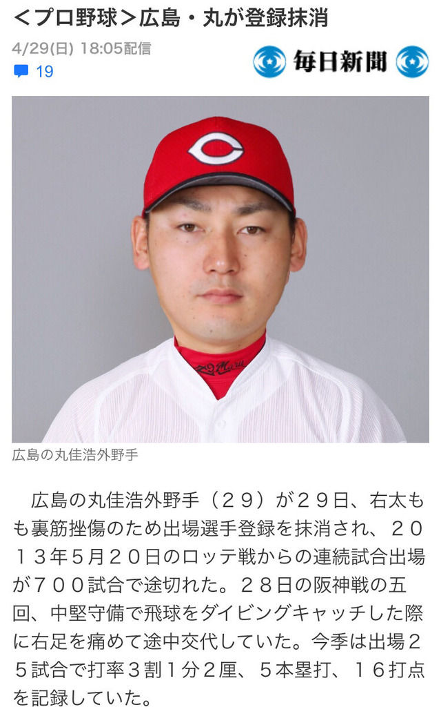 丸佳浩 打率.249 19本 63打点 出塁率.361 OPS.774