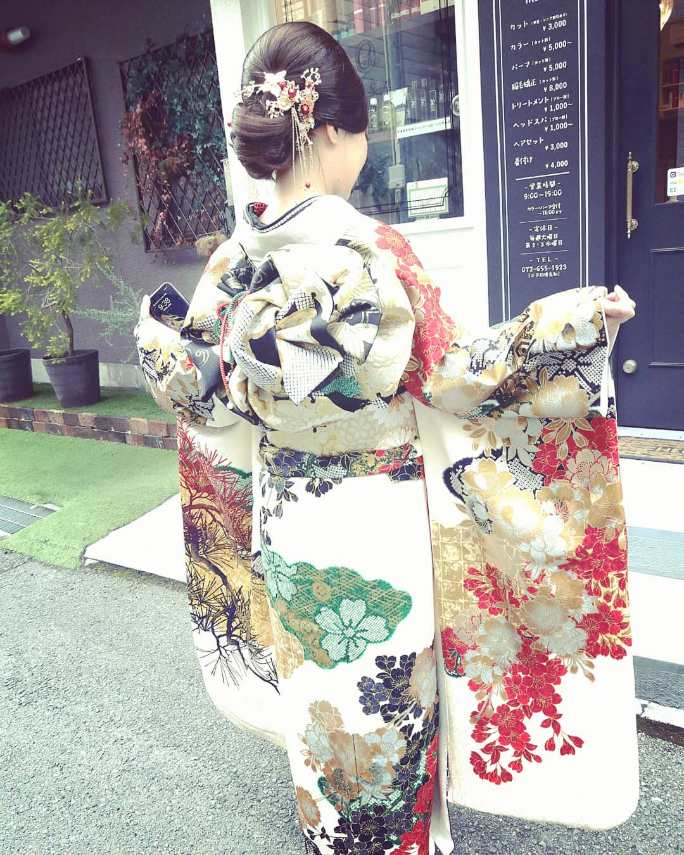 艶重視のヘアスタイルにゴールドの髪飾り、ゴージャスなお着物がとってもよくお似合いでした