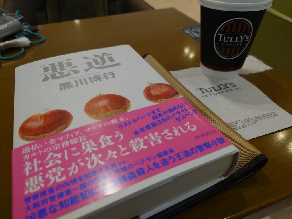 採血終えて読書タイム。黒川博行『悪逆』