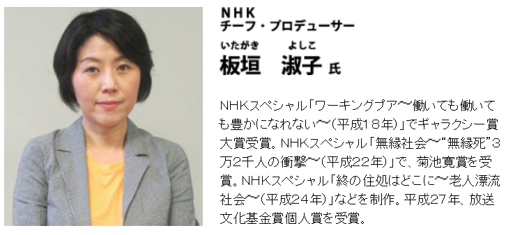 備考:多くの女性にセックスを強要した鬼畜リベラル・広河隆一の虚像づくりに協力する結果となった番組。