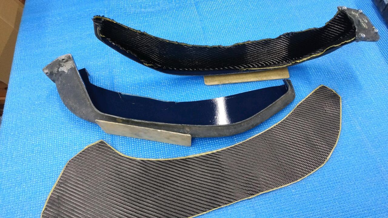 という試みがこれ「セロ、フロントストレイクフォース」ダウンフォースを稼ぎ、タイヤ前の空気抵抗を減らし、軽く、擦りにくいサイズ、更に綾織カーボンの斜柄の方向や一枚で見栄え良く積層可能な方向が限定される。。。コレ綺麗に作れる人滅多にいない(と思う)スリークサイドも同様にJ型断面で小指も入らない後端部分は幅5mm程度。。。※L型だと簡単、U型も浅いと簡単(深いと難しい)J型だと高い壁面が邪魔でゲルコートが浅い壁面に吹き難い。いつも新製品を創る度に課題(難題)を設定して売れなくても技術的な習得または性能アップのノウハウが得られるようにしてきました。自己啓発でもあり、模倣対策でもあり、、、、自己満足かも(笑