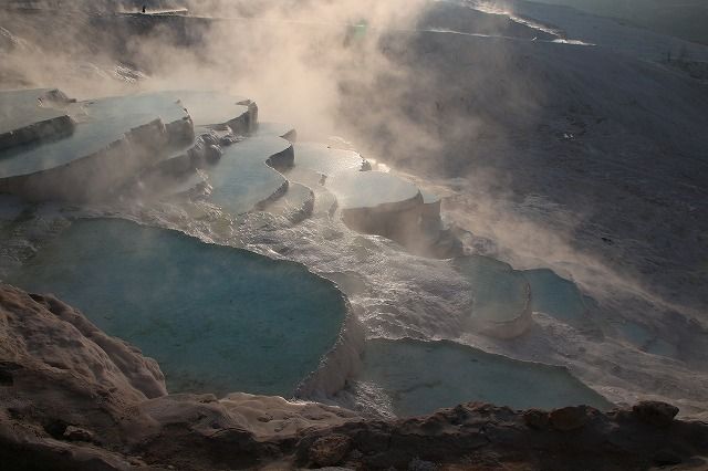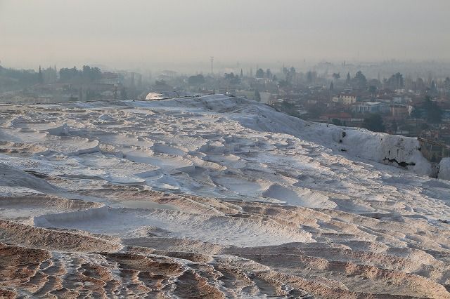 パムッカレ。 2〜3世紀には10万人を超える居住があった。その地域の温泉石灰棚。