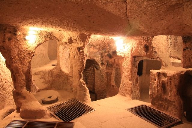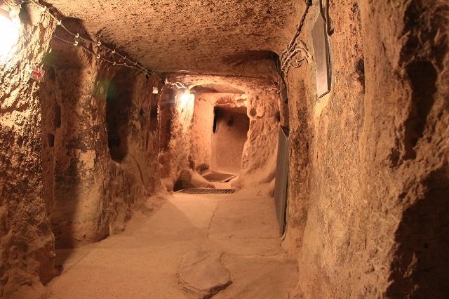9世紀頃、キリスト教徒がアラブ人から逃れるために作った地下都市で、地下8階まで有るそうです。私たちは、地下4階まで入りました。