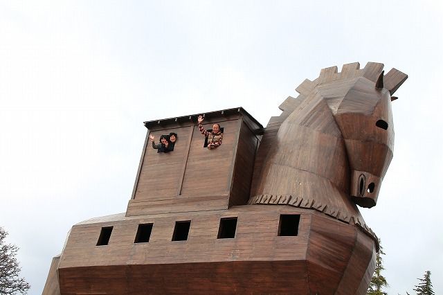 紀元前3000年頃から栄えたトロイ。 紀元前1200年頃勃発したトロイ戦争で使われた木馬の復元品。