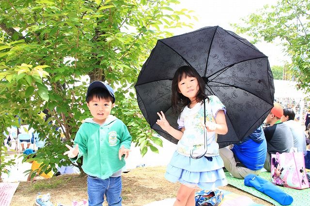 オブジェを見上げていた孫の つかちゃん