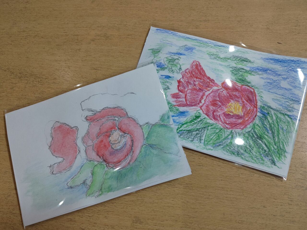 2024年02月05日 ✏️カルチャー便り✏️ 皆さん、こんにちは!今日は雪が降りましたね!その為かずっと寒い日でしたね…😅そんな今日のカルチャー教室は、毎月恒例の水彩色鉛筆画!今回のお題は、2月の花「椿」です!見本は同じでも、描き方によって印象が変わりますよね!