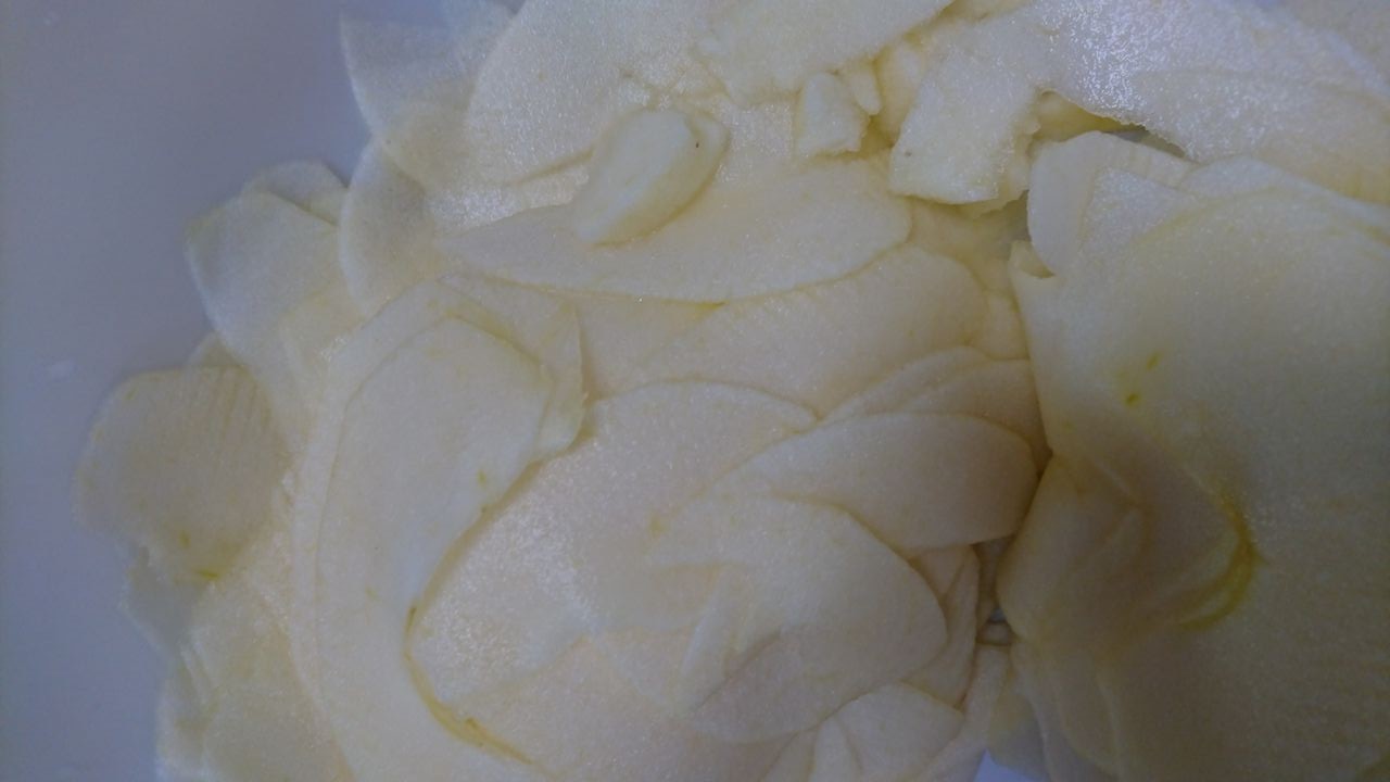 8.柔らかくなってきたら、木へらなどで、少し潰す様にする。