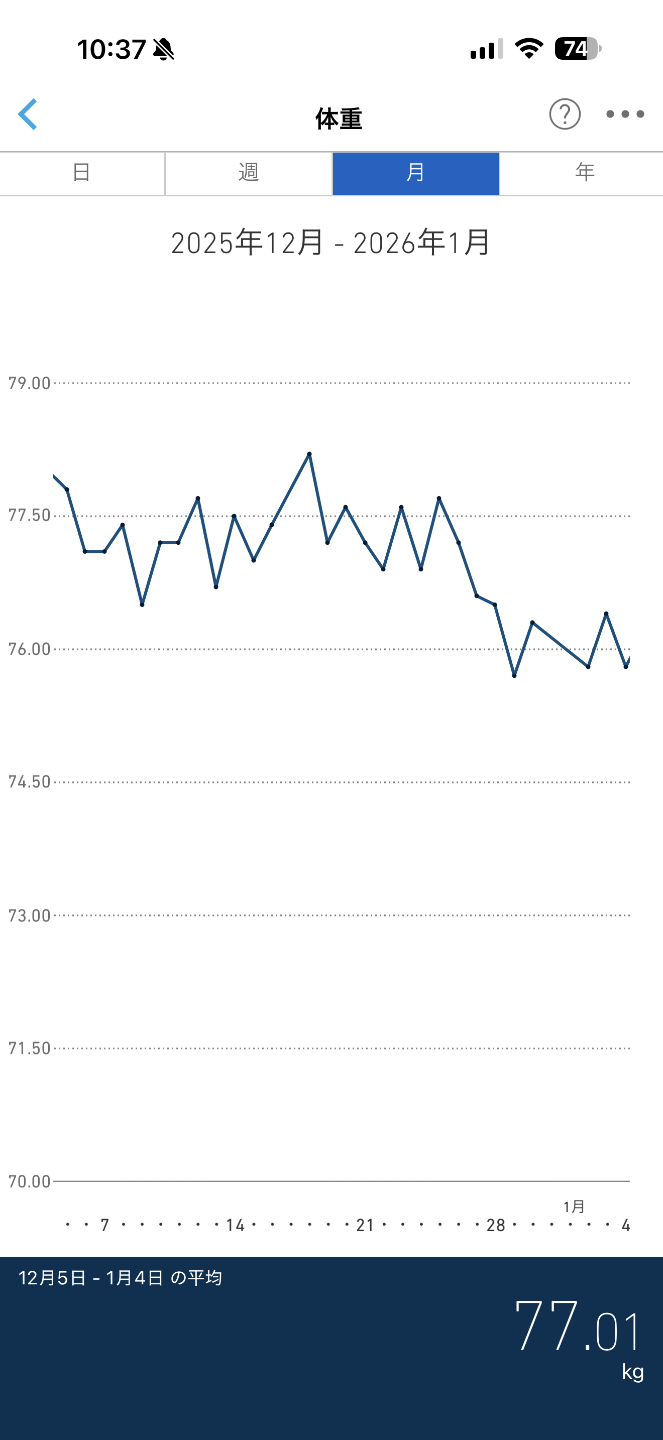 74.4キロと3.6キロ減。