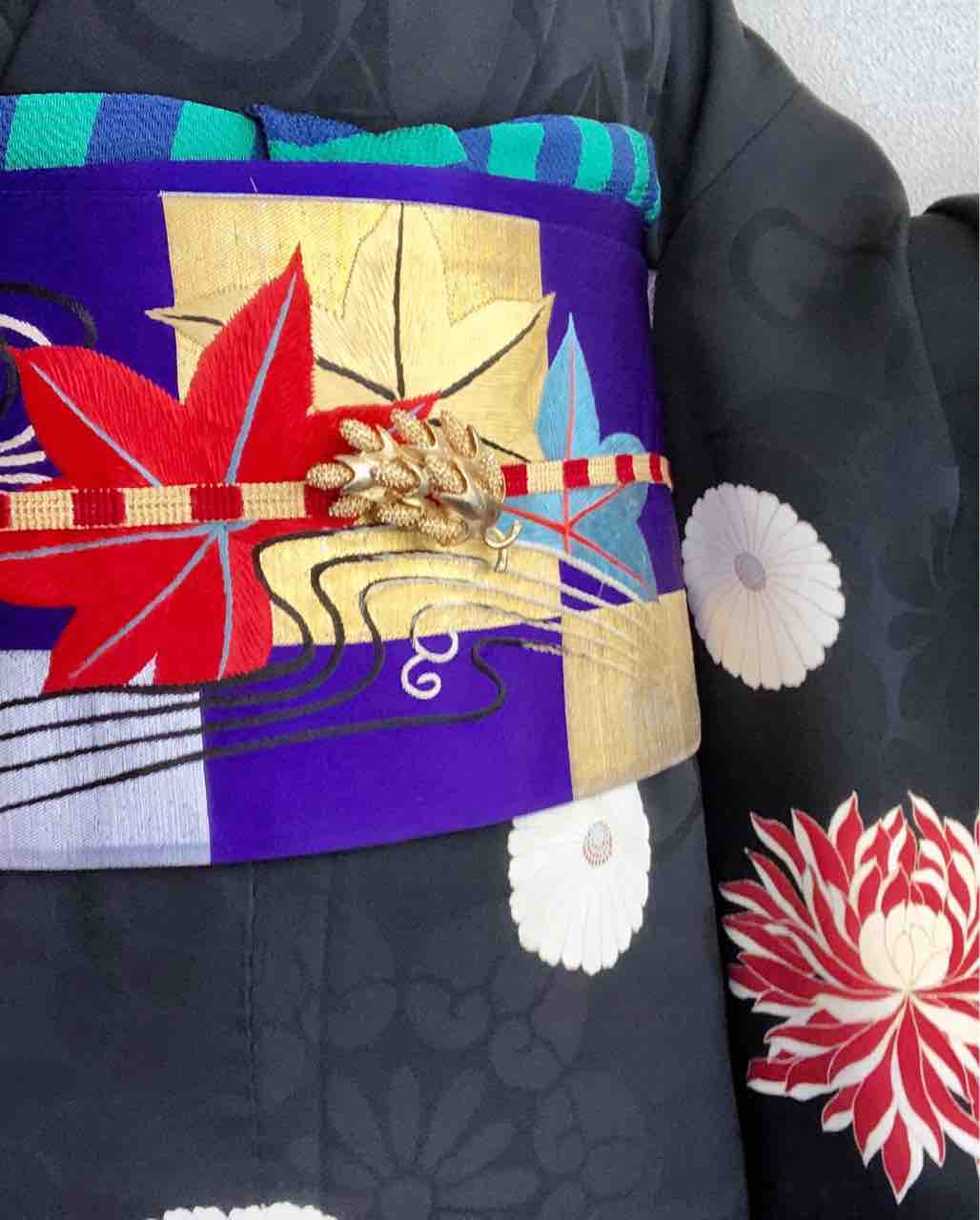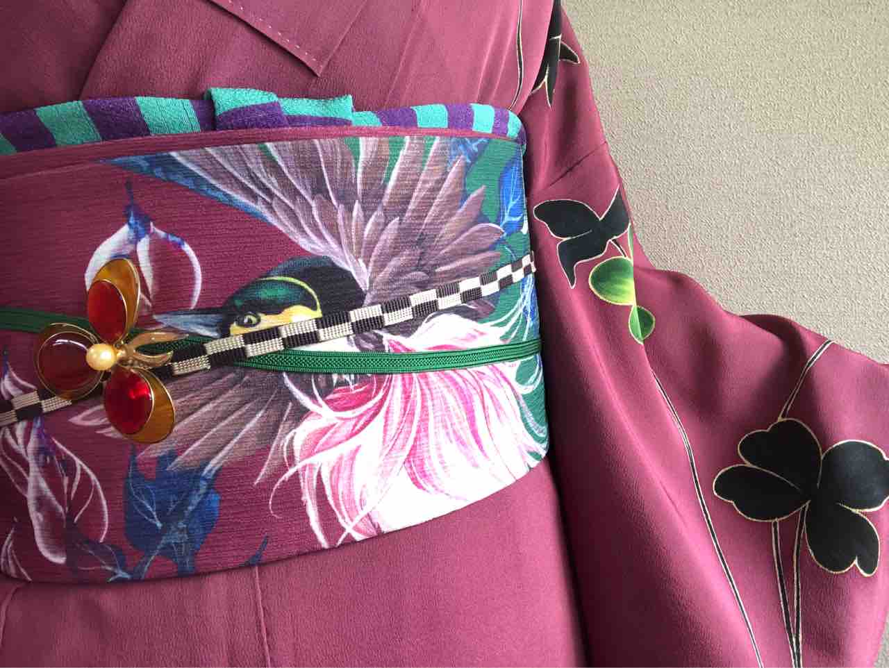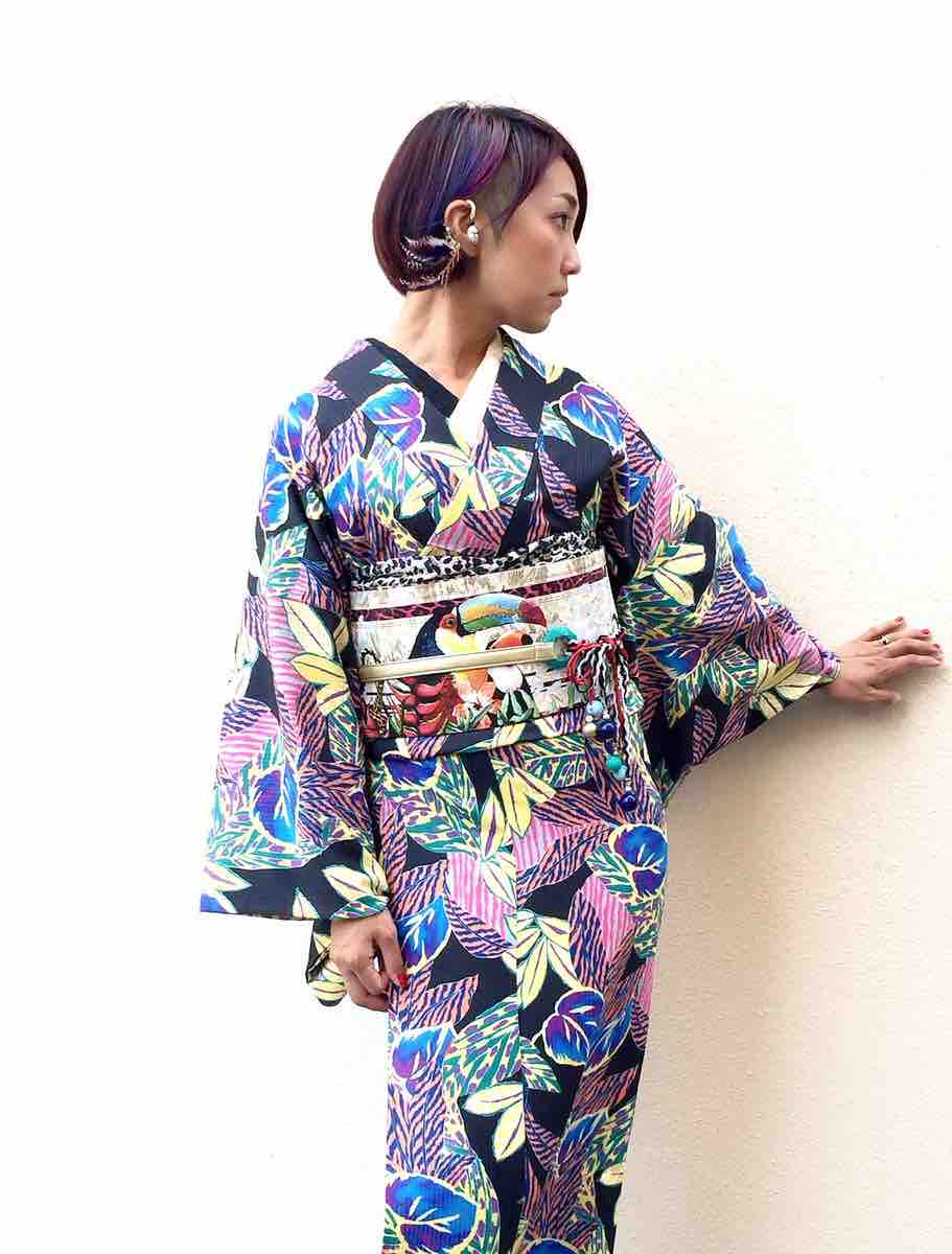 葉っぱの裏がピンクだったりと配色が楽しい帯