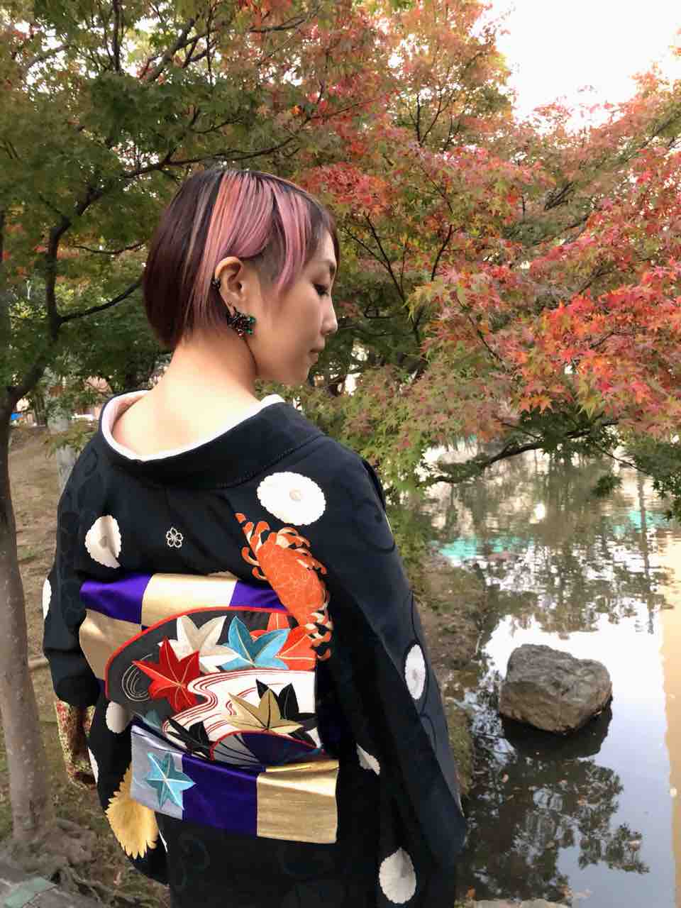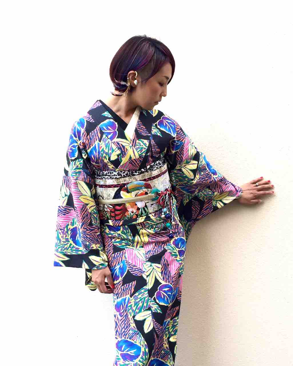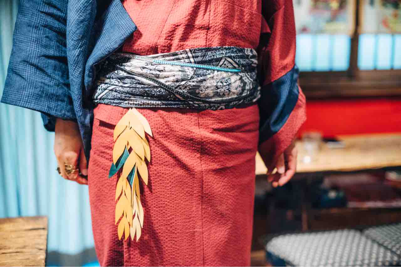 葉っぱの裏がピンクだったりと配色が楽しい帯