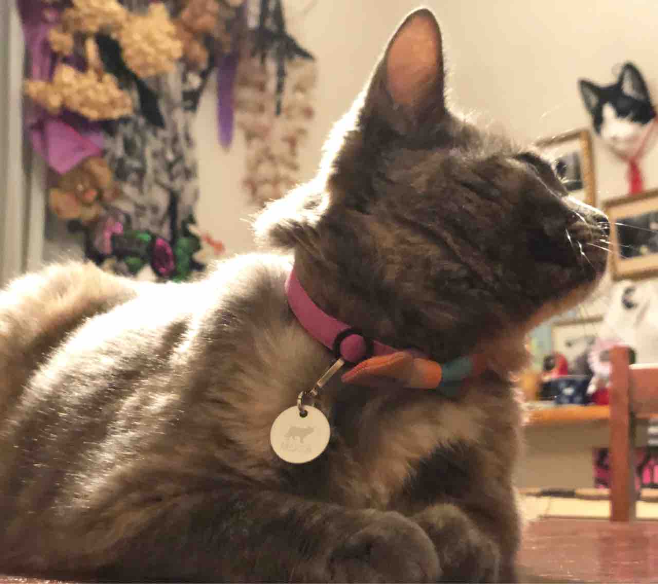 ちょっと見にくいけど、ピアスはお客様に頂いた黒猫ちゃん