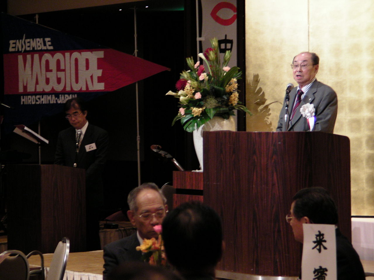 昨年に続き中央大学総長・学長永井和之様をご来賓に迎え、広島支部への温かいお言葉をいただきました。今年は、役員改選も行われ、広島支部長に二國則昭(昭和46年卒)、幹事長に田中千秋(昭和52年卒)が就任されました。懇親会ではアンサンブルマジョーレの演奏や、恒例の抽選会が行われ、久しぶりに顔を合わせる旧友との会話を楽しみながら、大変盛り上がりのある時間となっていました。