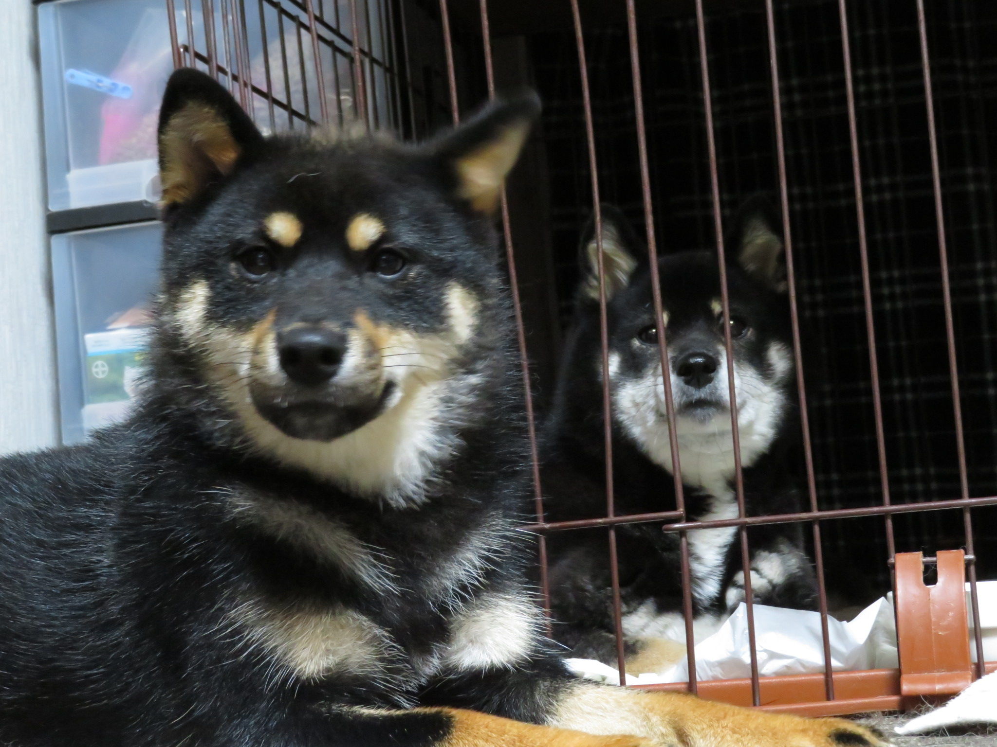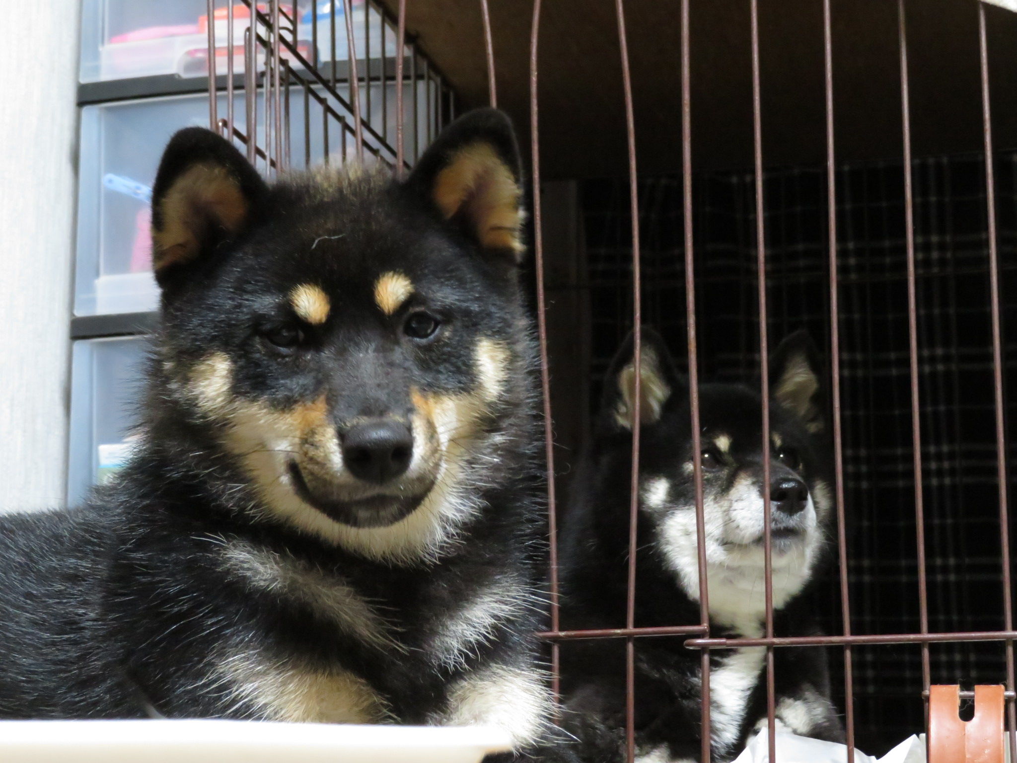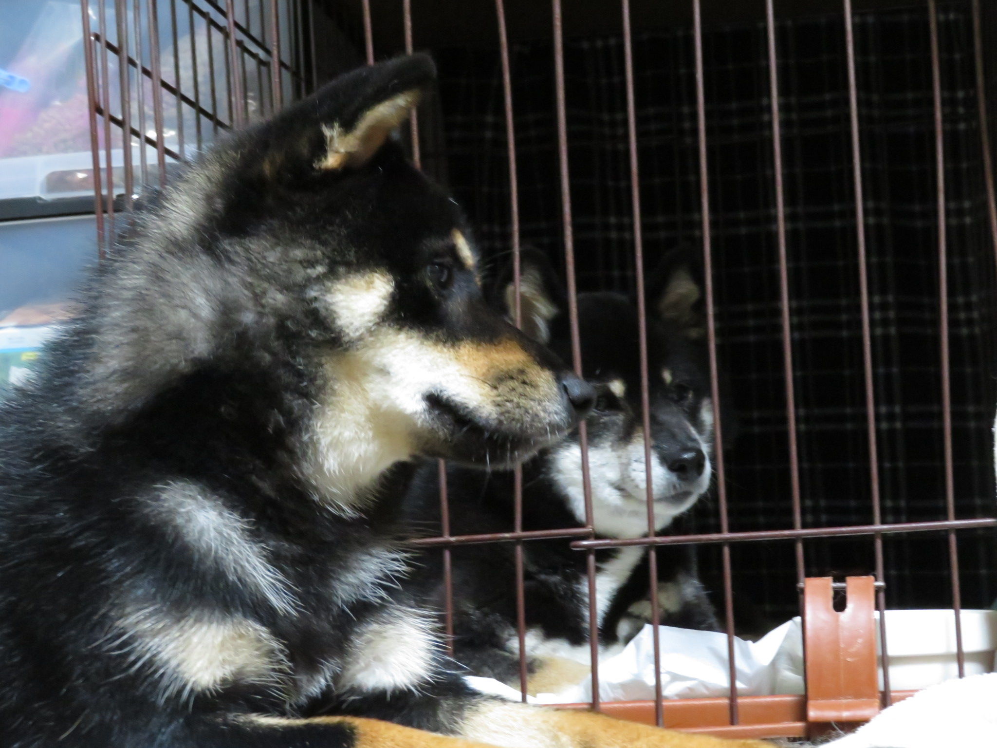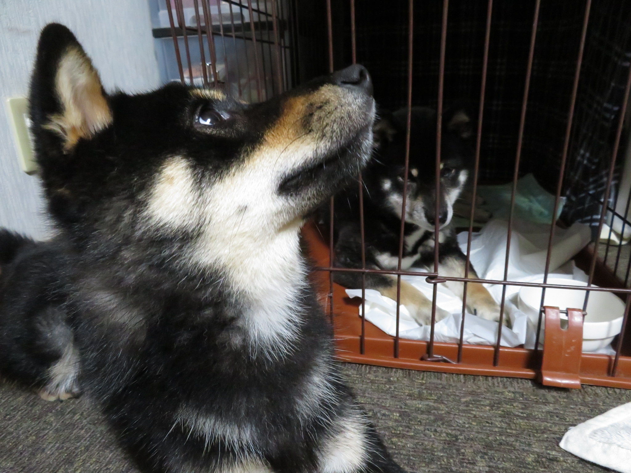 くるみちゃんがゆいちゃんのケージの前で