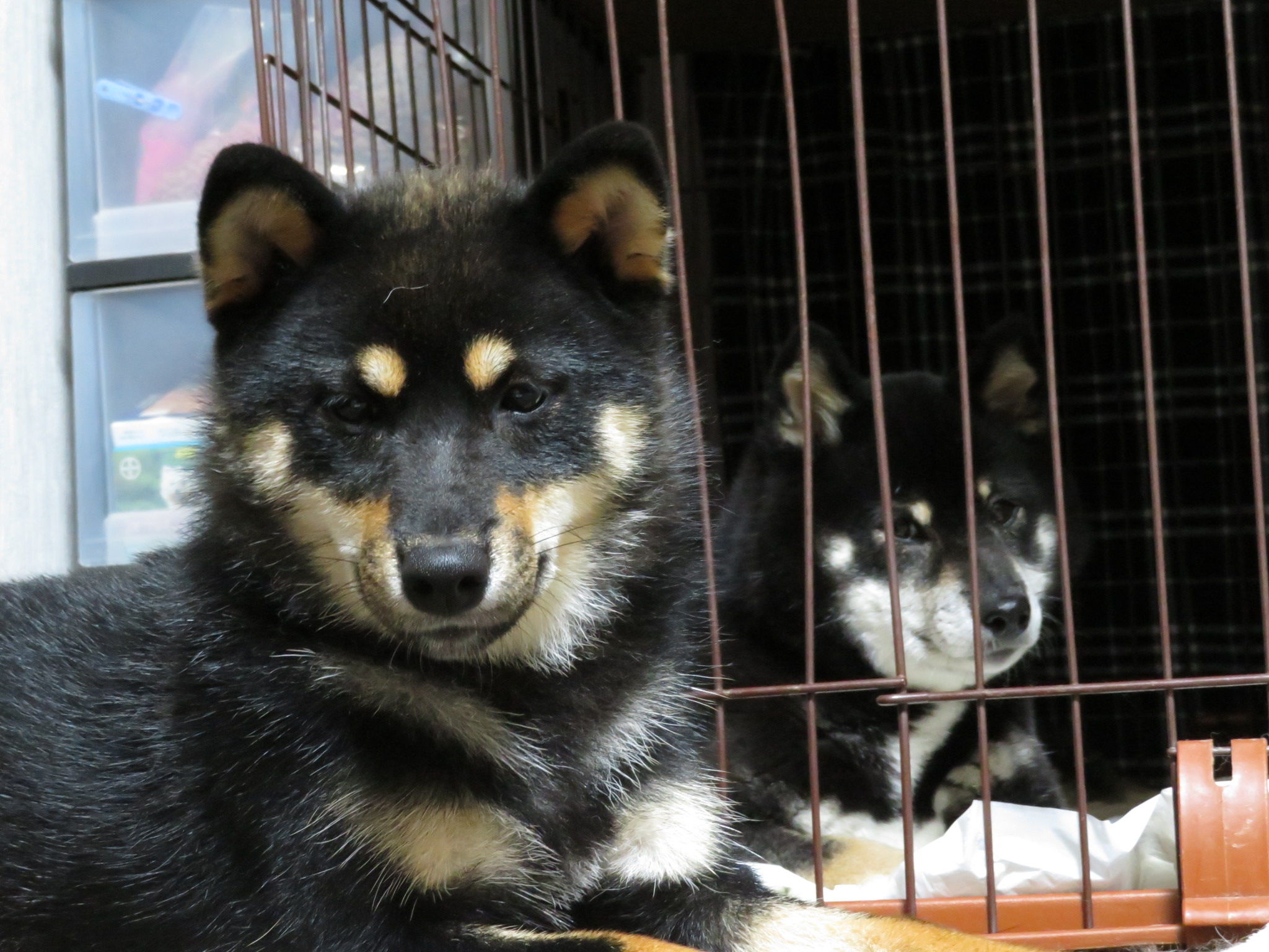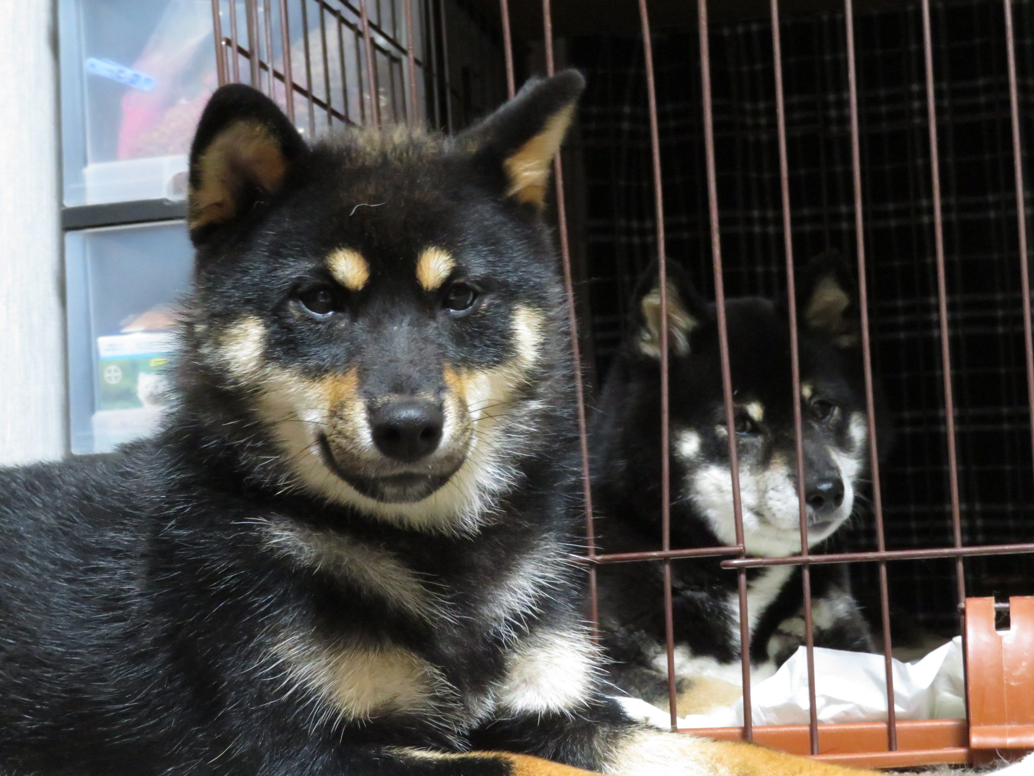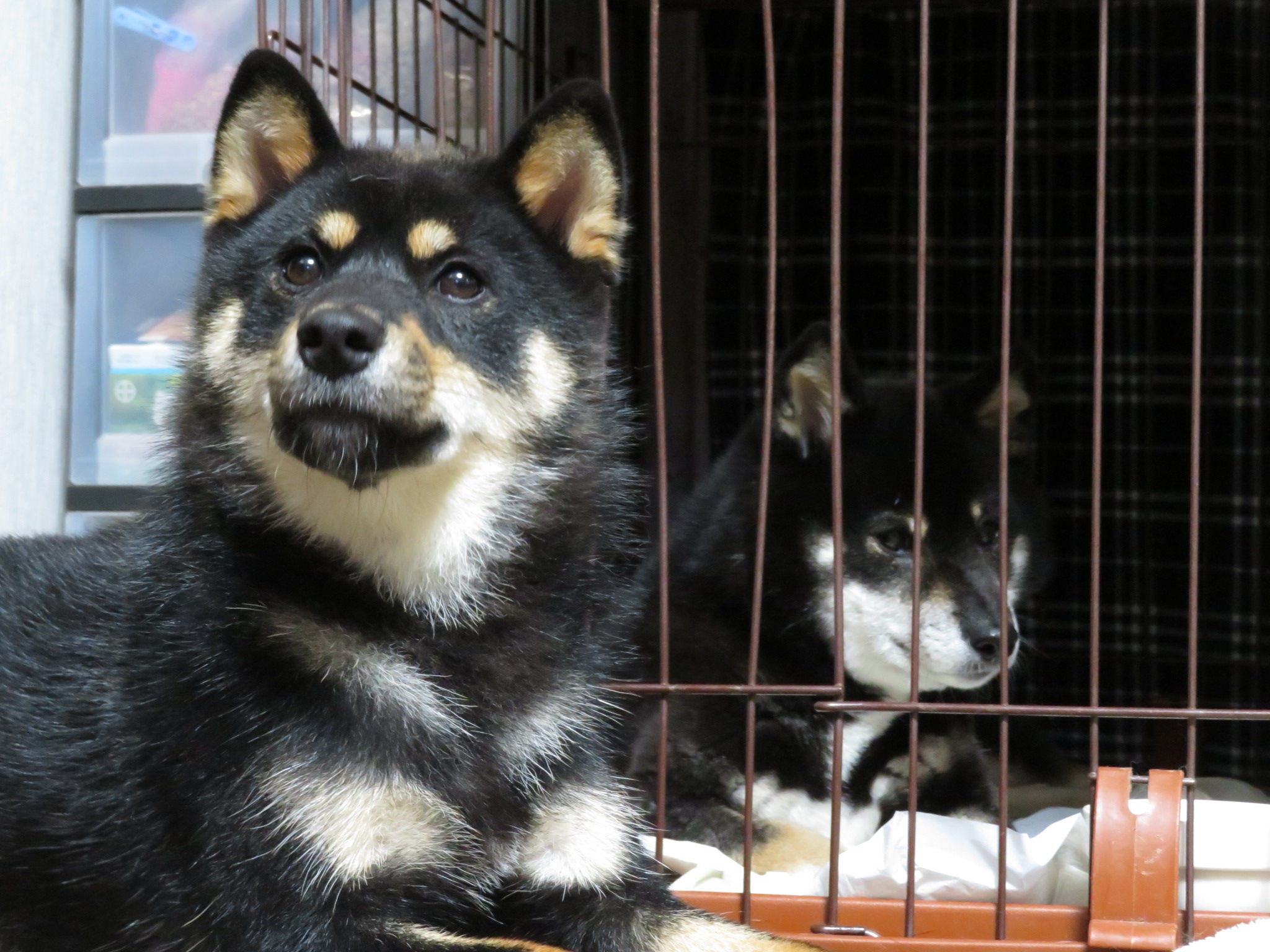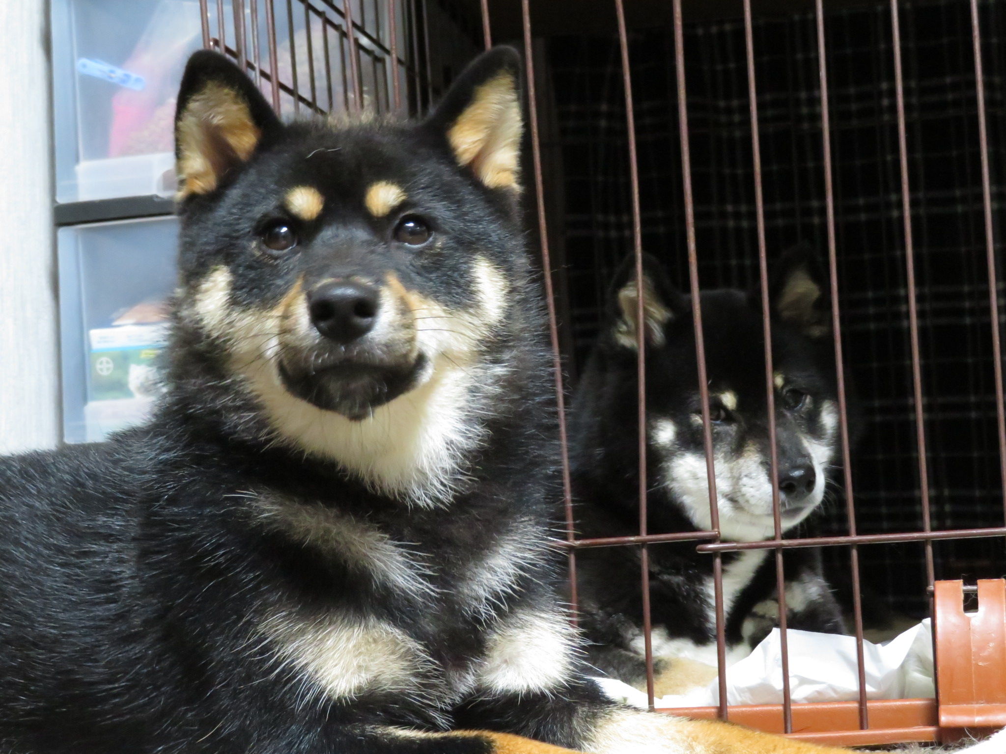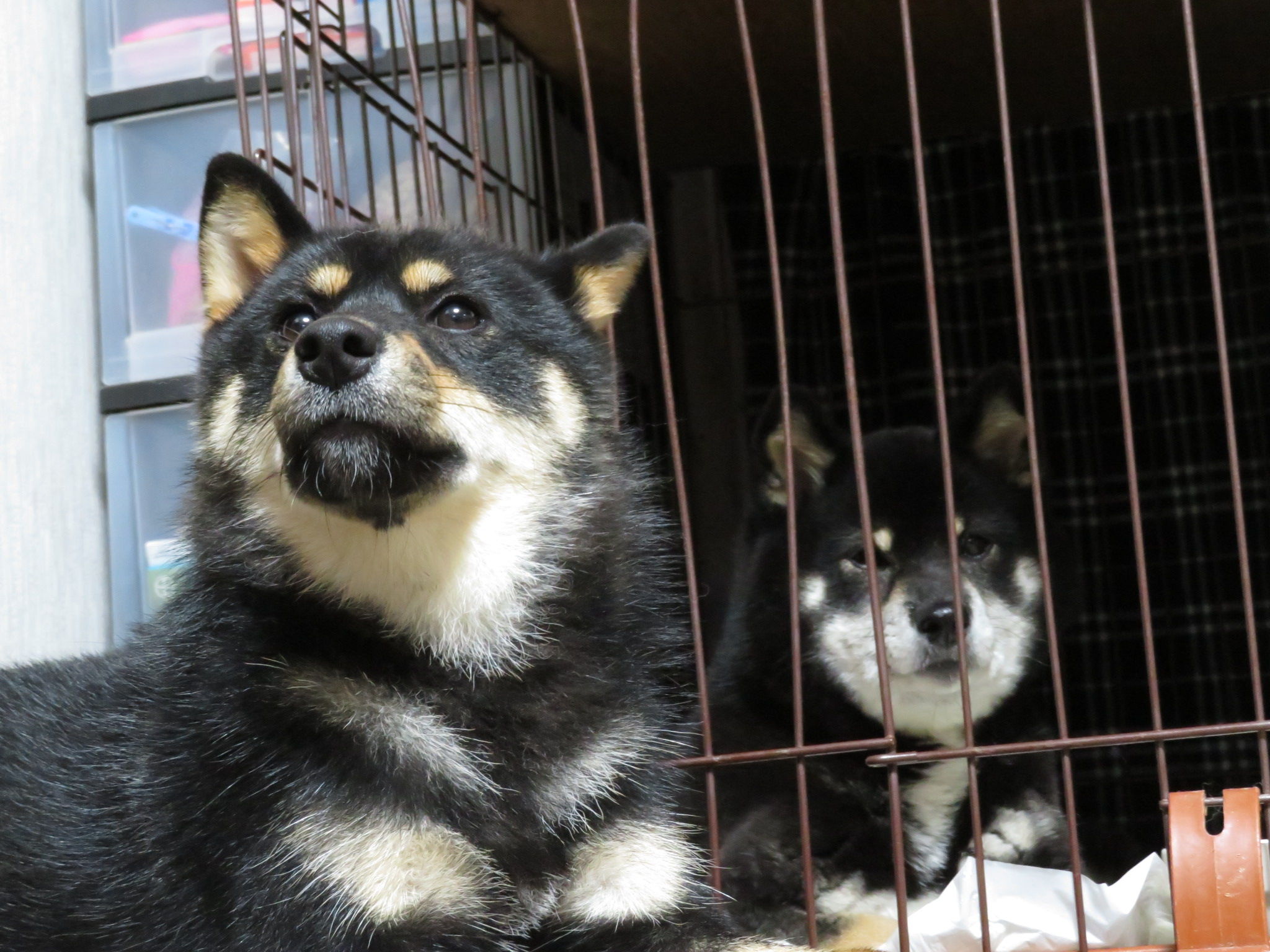 くるみちゃんがゆいちゃんのケージの前で