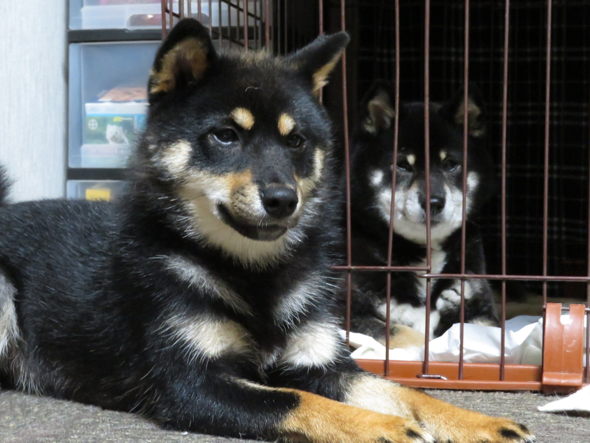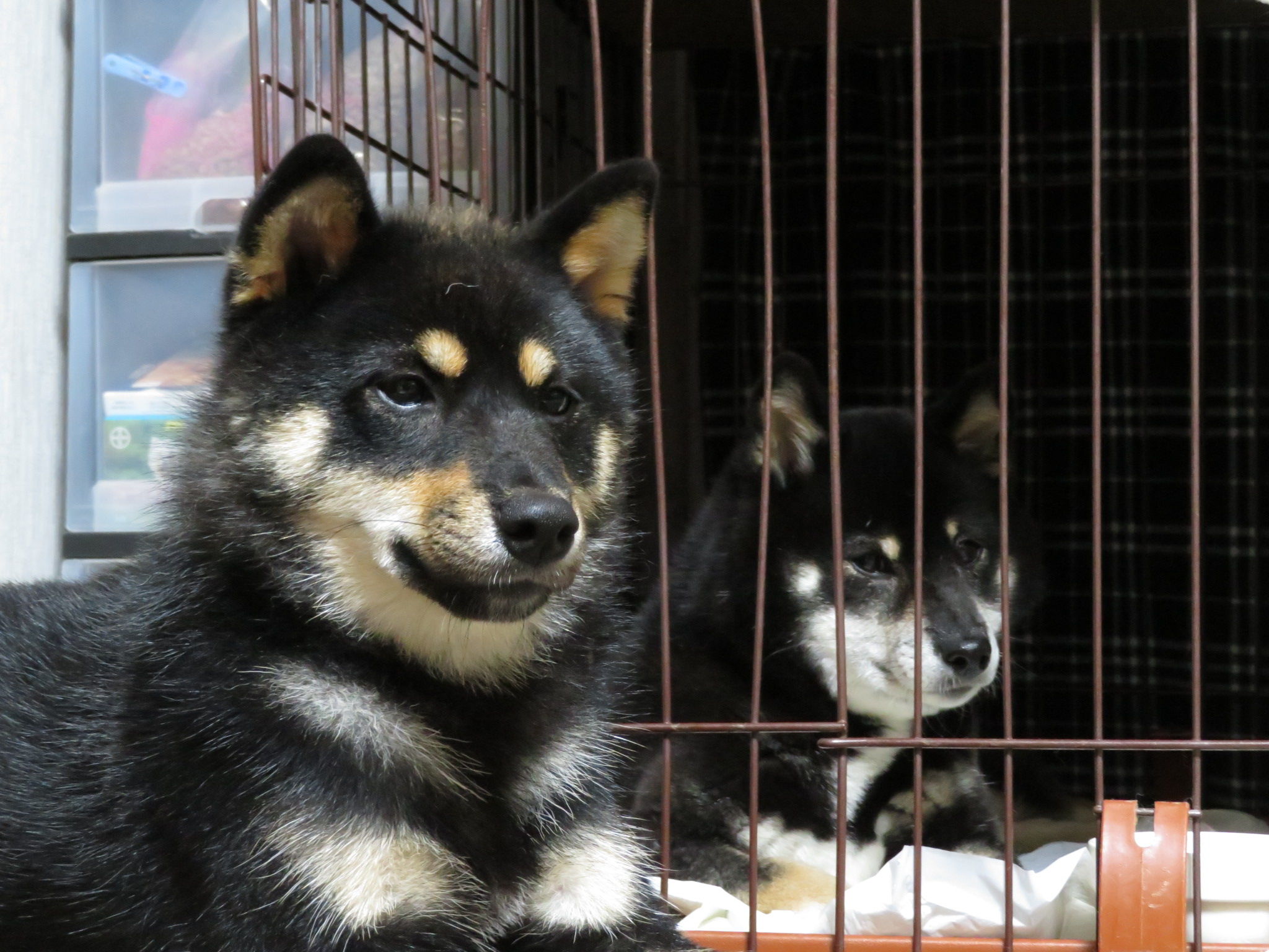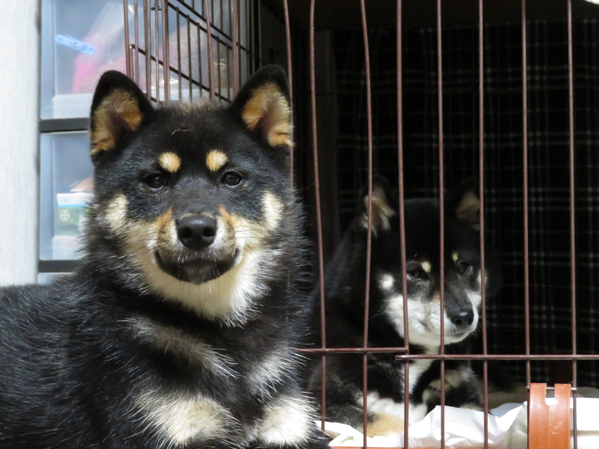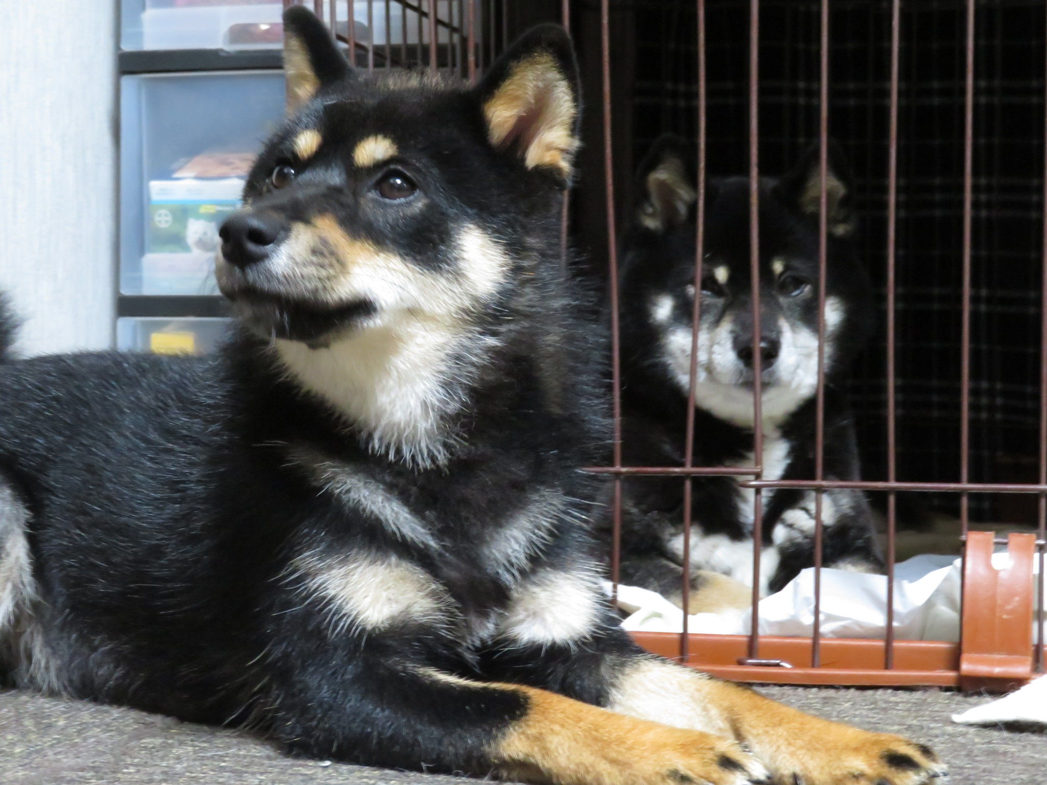 くるみちゃんがゆいちゃんのケージの前で