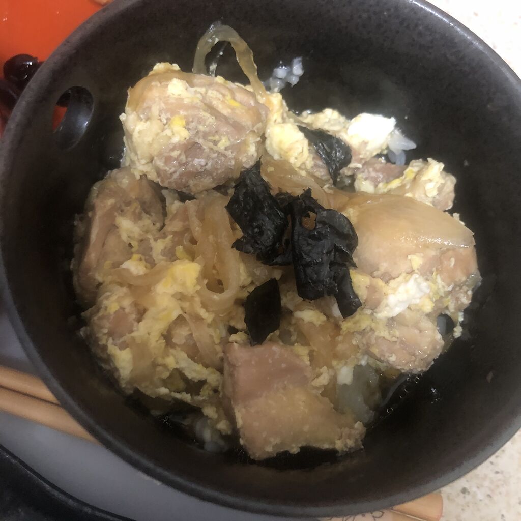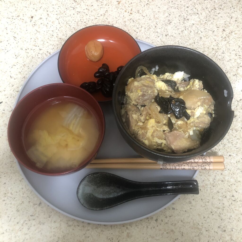 そんな中での自炊は親子丼にお味噌汁、お節の残り物の黒豆。白菜とお豆腐のお味噌汁です。