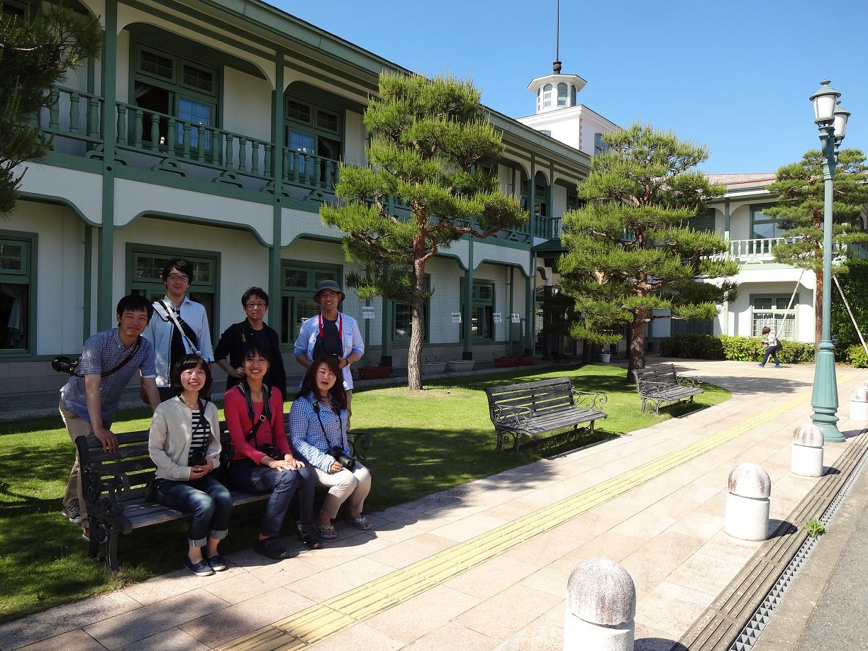 八幡旧庁舎前で。