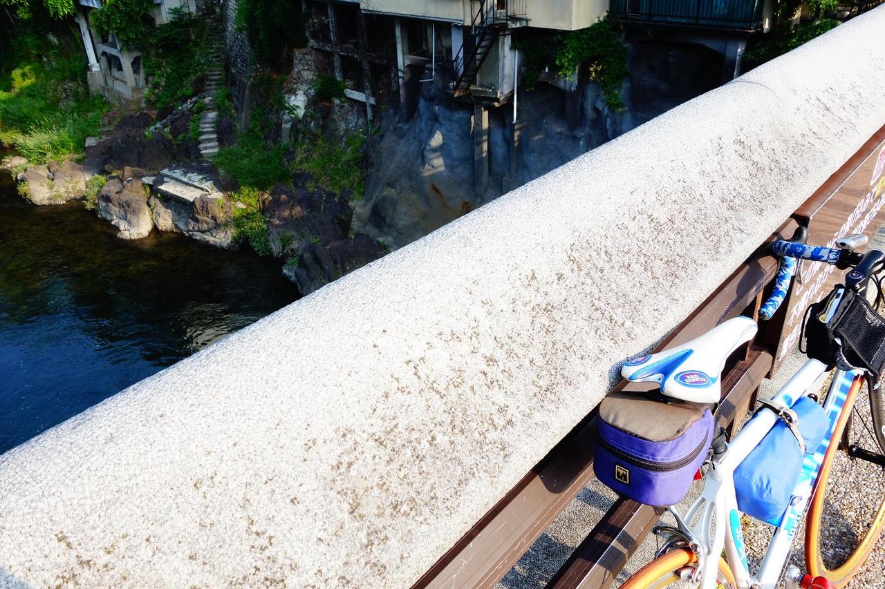 ラッキーにも神原トンネルを過ぎたら神岡まで途中ひだ流葉スキー場を左に見ながら豪快な下り。ところが神岡の街中を待ち合わせ場所まで向かう道が今日一番の上り!!! 距離にして500mほどしかなかったのですが最後の最後にやられました。 このキノコは公衆WC、横をガッタンゴーの線路が走ってます。