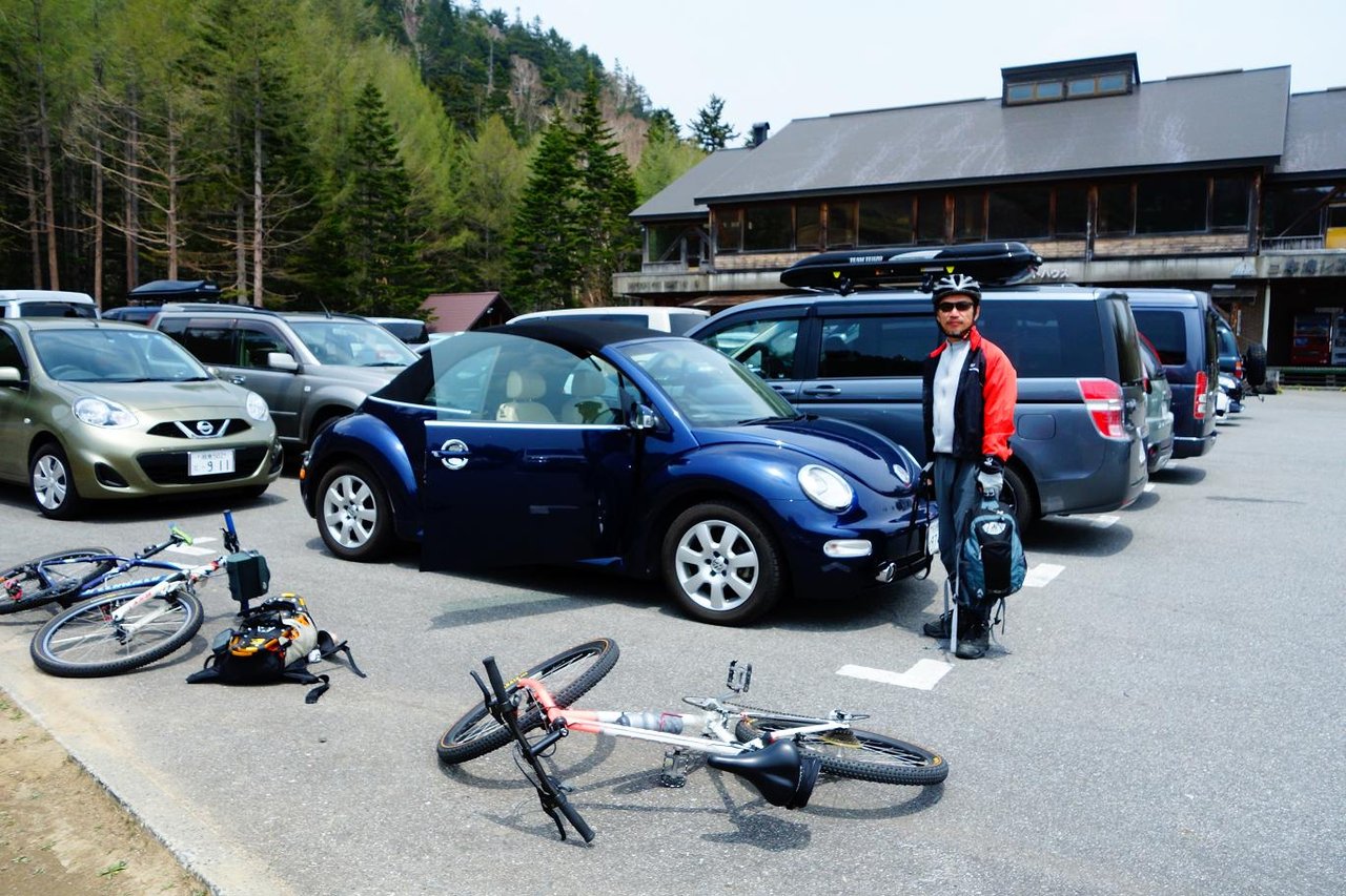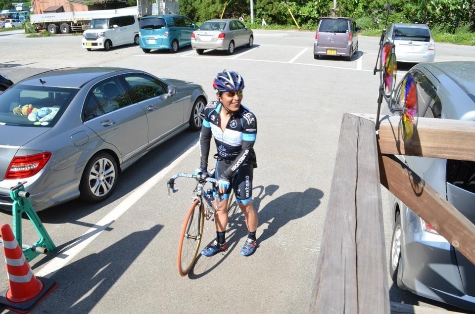 当初高山で合流の予定が遅れた事もあり40kmほど余分に走ることに、そして仲間を待たせてしまったという事もあってとにかくこの場は自転車を車に積んでもらい早く次の予定に滞りなく移行したいという思いで一杯でした。 ですから到着時のもろもろの写真撮影は無し、この写真はS織さんからいただきました。