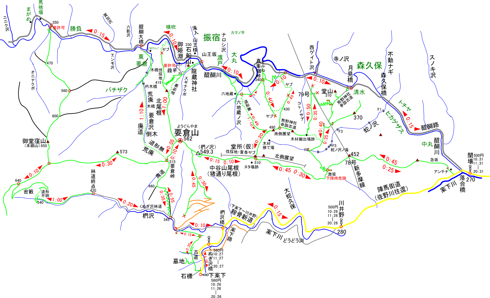 くぬぎ沢バス停〜くぬぎ沢林道終点〜御堂窪山〜オニナクボ〜醍醐