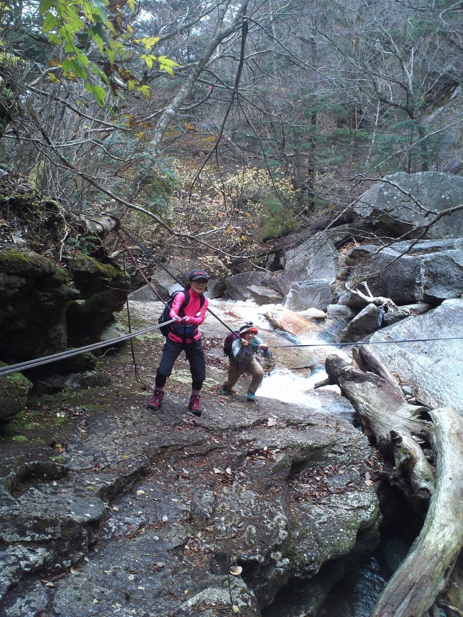 途中滝を巻いて下るルートも慎重に・・