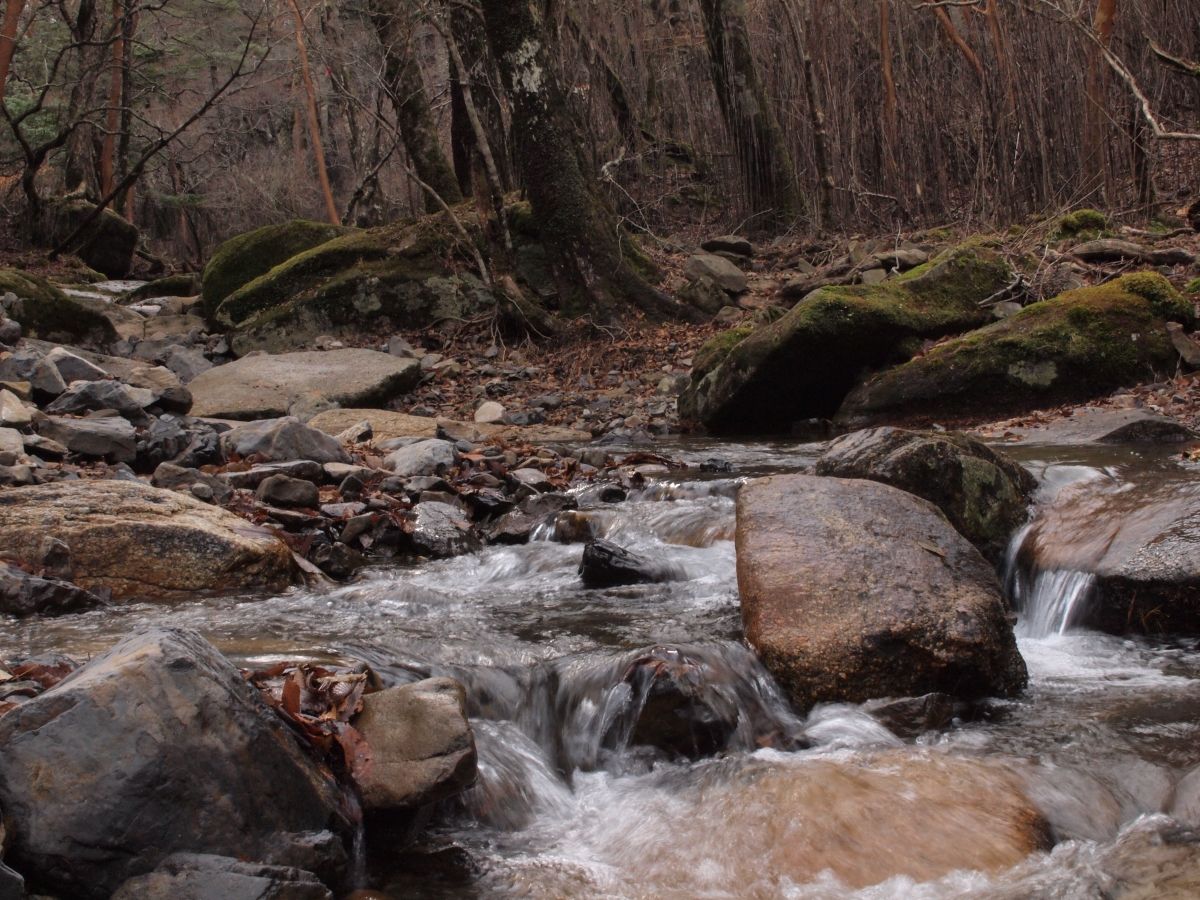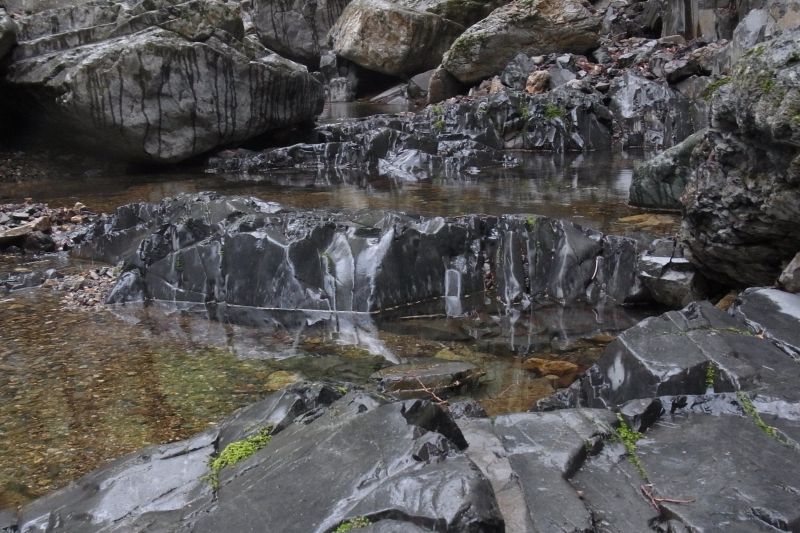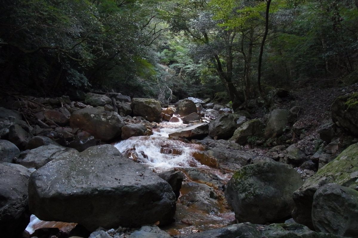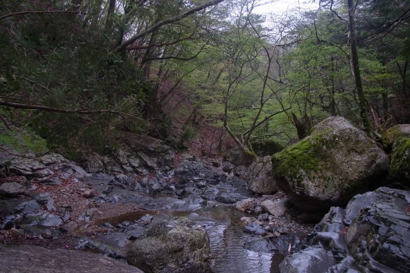 この山も一枚岩の岩盤で山が形成されていてそこに沢が流れています。