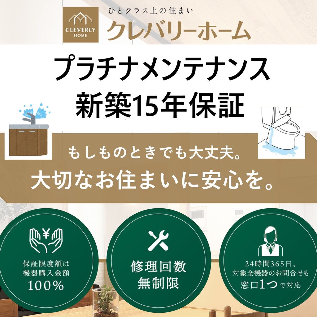 クレバリ-ホ-ムでは食洗器やIHコンロ・シャワートイレ・給湯器など『故障しやすい機器』の15年保証制度をスタートさせます!!