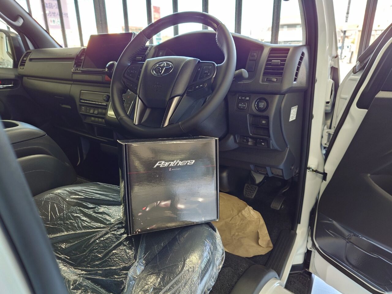 2026年03月13日 9型ハイエース防犯対策!! 今日も肌寒さを感じる一日でしたね。納車となった新型ハイエースはセキュリティー取り付けの為、入庫です。ヘッドライトもカッコよく、各センサー、クルーズコントロール、フロント内装周りを中心に大きく進化したハイエースは、納車台数も少なく、希少な状態ですので、防犯対策は欠かせません。そこで、最高峰パンテーラのセキュリティーをオプション追加で取付け、万全の状態へ仕上げていきます。ダッシュボード上にはスキャナーも取付け、安心して納車後を過ごして頂けます。