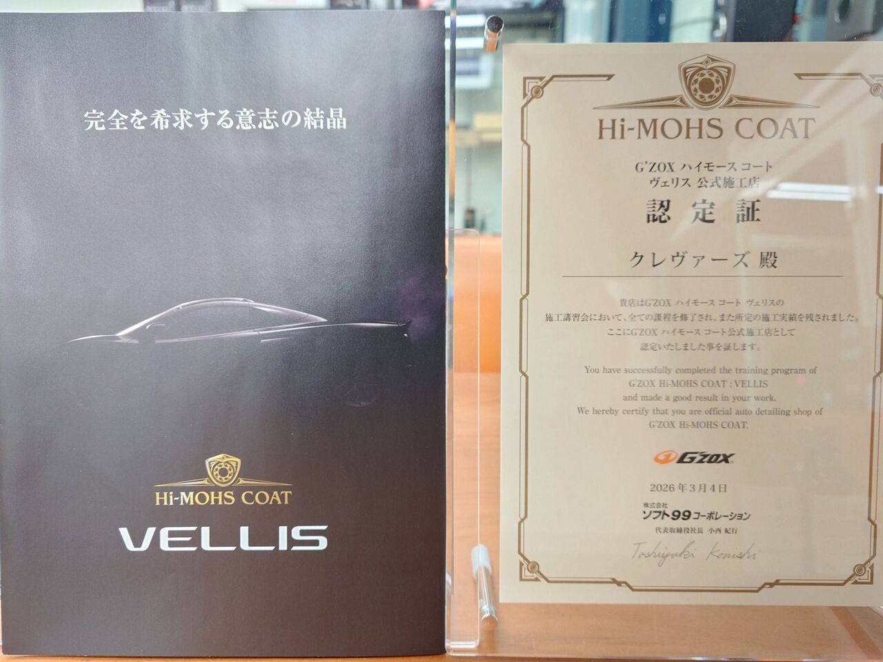 2026年03月09日 ハイモースコート ヴェリス!取り扱い開始! 今日はまた寒さを感じる一日となりましたね。2026年オートサロンで話題となったハイモースコートの最上位モデル、ヴェリスの取り扱いを開始いたします。https://www.gzox.com/coating_service/himohs-coat-vellis.html先日、講習を受け、取り扱いが可能になったヴェリスは今までのハイモースコートより、光沢、撥水性能、防汚性能、一年後も安定した接触角・転落角率を維持し撥水性能を維持し続けてくれます。