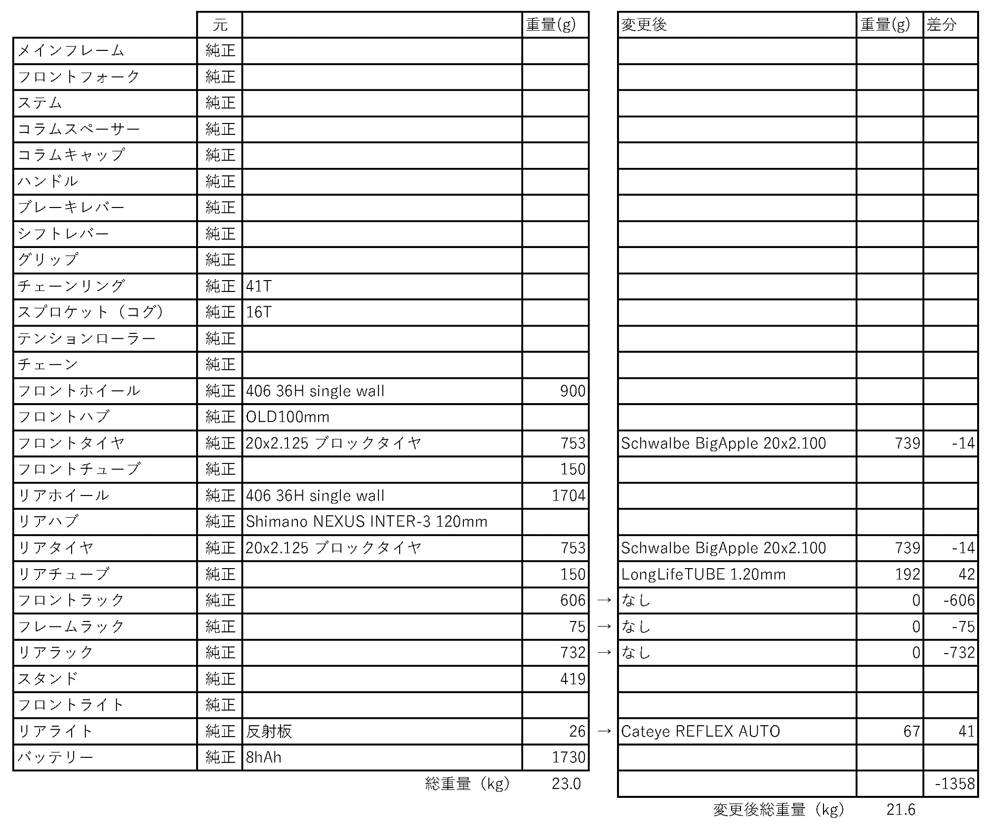 元々23kgあるPanasonic EZで18kg台を目指します。