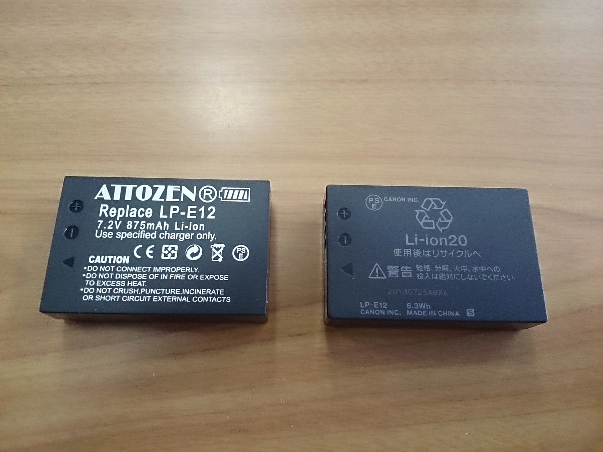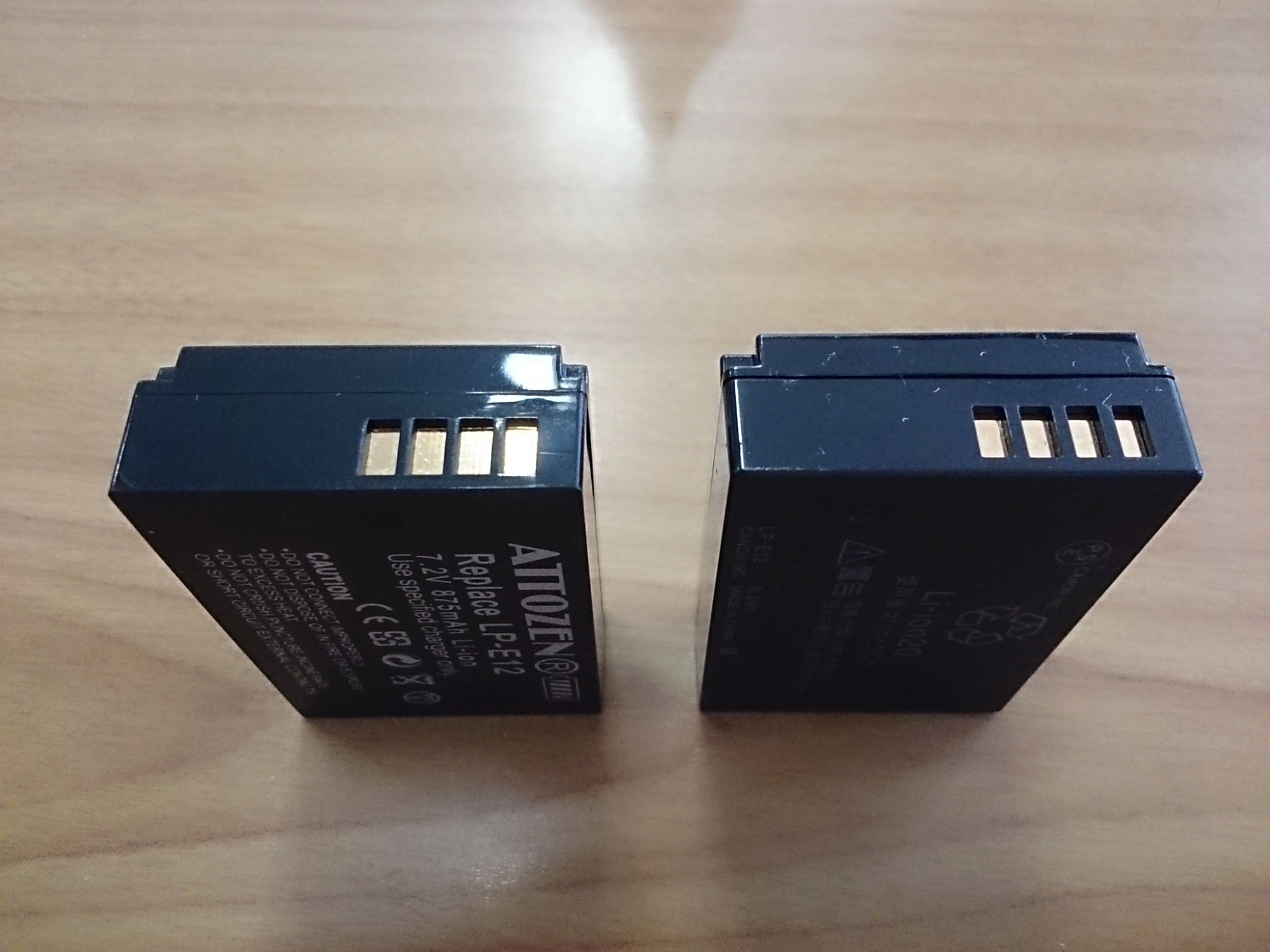 先の互換バッテリーとの比較(純正は紛失)。