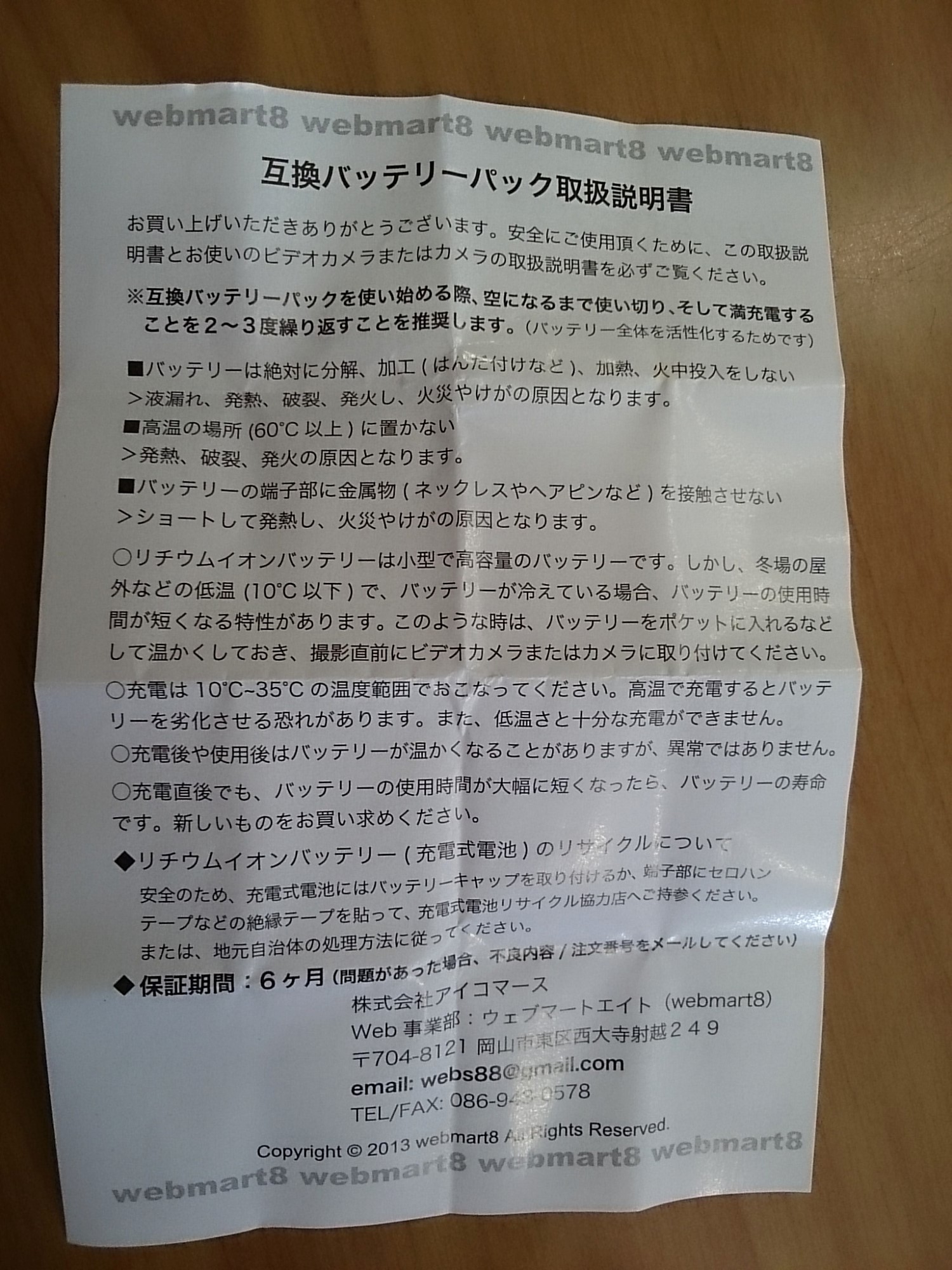 この互換バッテリーは表がまっさらですね。