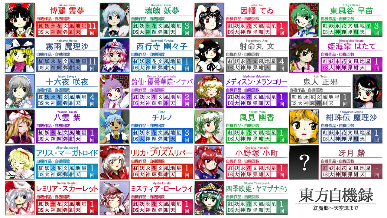個人的には自機には氷・雀・水爆烏・蝶々・春告げ・猫姐さんと大ちゃん使いたいなー